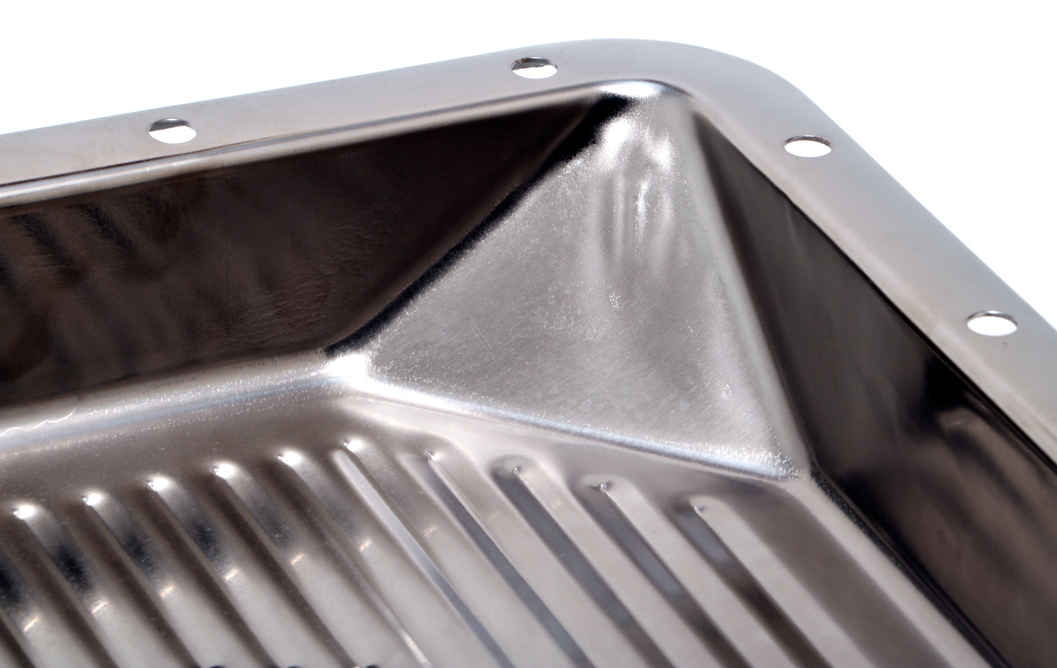 FORD C-6- CHROME Transmission Pan; Stock Capacity; Stock Depth; FINNED Bottom