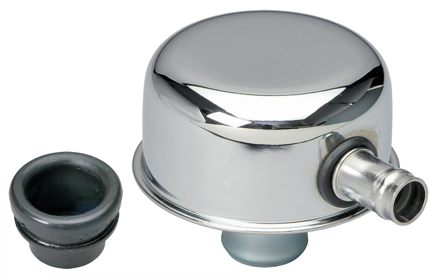 Trans-Dapt Performance 9242 - PUSH-IN STYLE BREATHER CAP WITH TUBE (INCLUDES GROMMET); 2-3/4 IN. OVERALL DIAMETER - CHROME