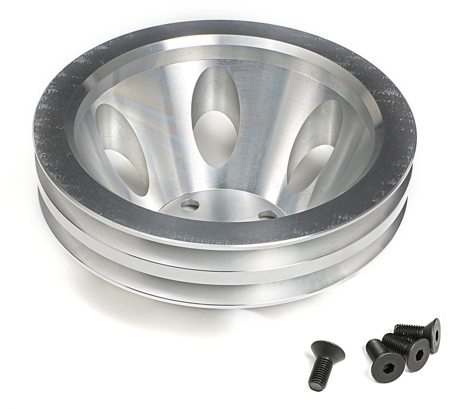 Trans-Dapt Performance 9483 - WATER PUMP PULLEY; 2 GROOVE; 1969-1985 CHEVROLET 283-350; LONG WATER PUMP- MACHINED ALUMINUM