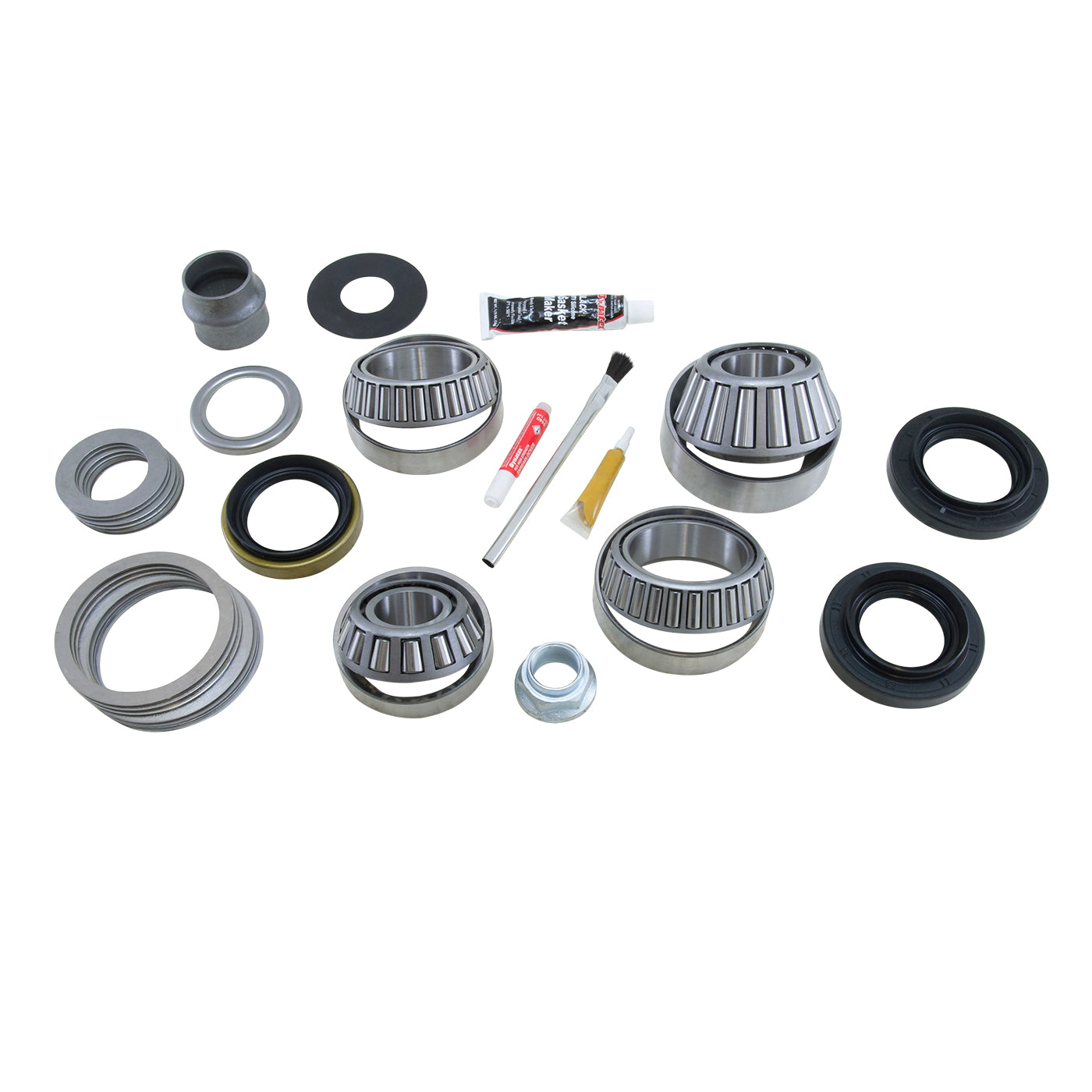 - Included are carrier bearings and races, pinion bearings and races, pinion seal, complete shim kit, pinion nut, crush sleeve, thread locker, marking compound with brush and silicone