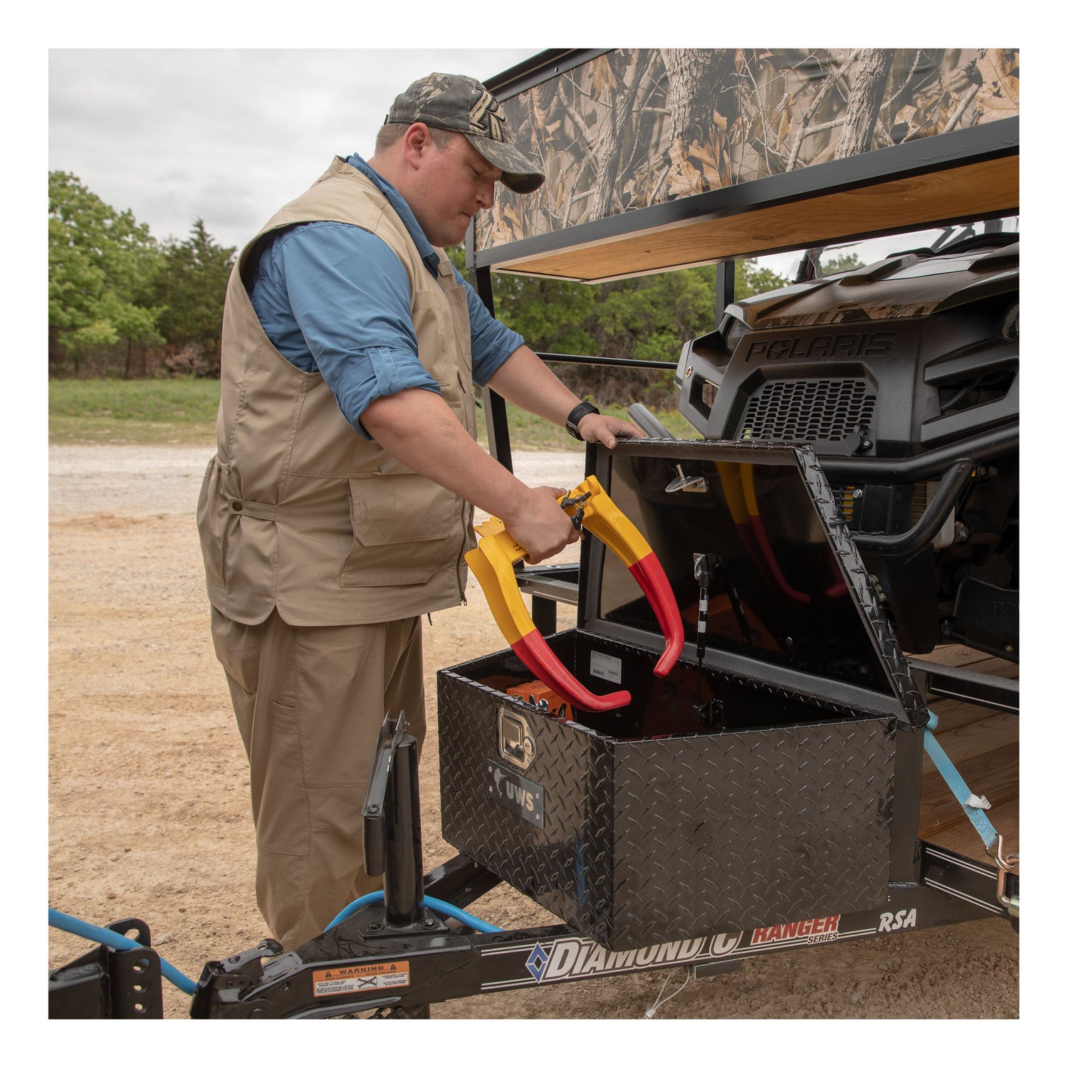 This replacement leg is designed to mount a truck side tool box. It is constructed from bright aluminum and is compatible with any UWS truck side tool box. Two legs are required for installation, one leg per package. Hardware not included.