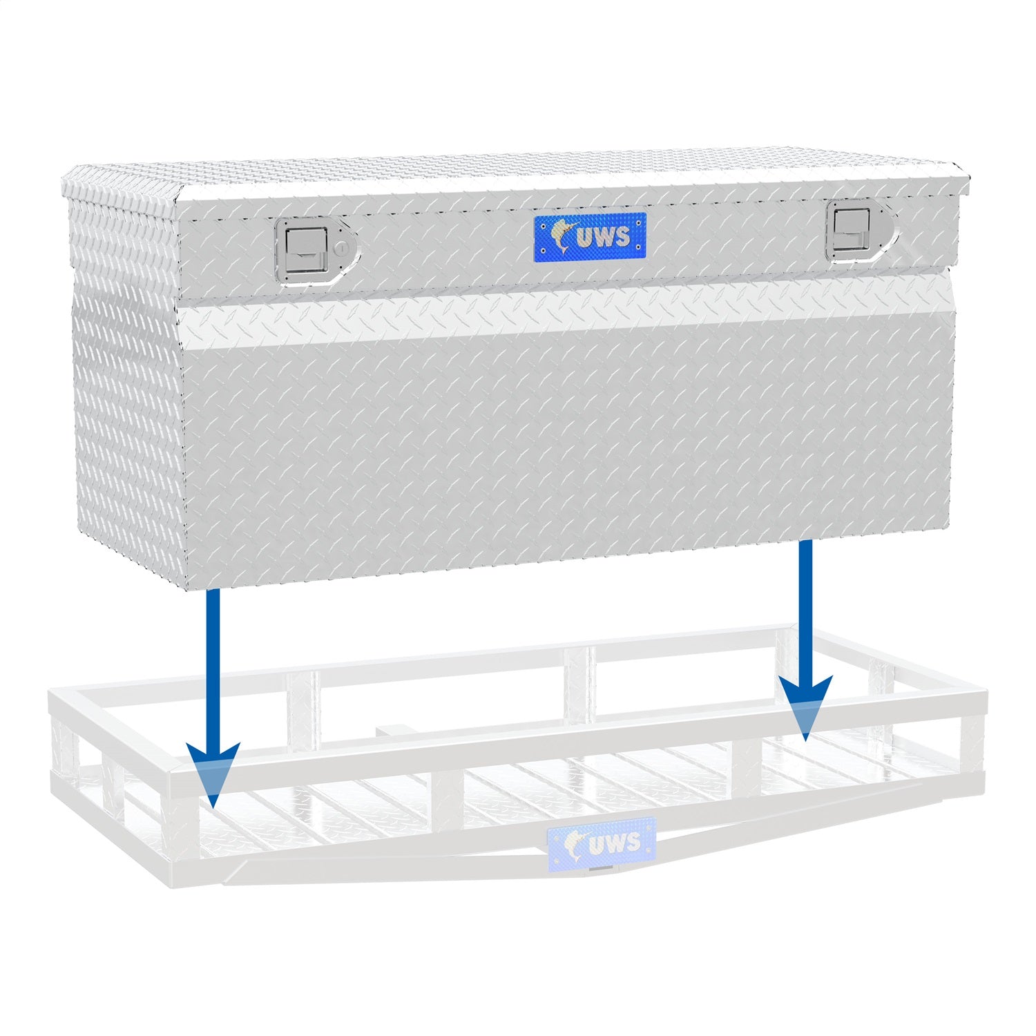 UWS utility chest boxes provide unbeatable storage and security for your items, whether in your vehicle, in the shop, at home or on the job. Each box features a corrosion-resistant aluminum construction, a stainless steel locking system and a patented RigidCore foam-filled lid -- all to keep your equipment and valuables safe, well-organized and easily accessible whenever needed. This particular tool box is designed to offer a perfect fit for the UWS cargo carrier #UWS-CARRIER. It can also be used as a standard storage chest box for a variety of applications. It is constructed from extra-thick aluminum for increased structural strength, and the tub is welded together into a single piece to make it completely waterproof. The lid features a patented foam core, sandwiched between two aluminum plates. This core greatly increases the rigidity of the lid and helps prevent bending and warping, making operation very smooth. The locking mechanism of the UWS cargo carrier tool box provides excellent security for your items, featuring stainless steel, key-operated paddle handles. Stainless steel construction supplies the locks with long-lasting corrosion resistance, and the lid also has a MicroSeal gasket, blocking moisture, dust and insects from getting inside and damaging your valuables. The lid also opens a full 90 degrees for easier access, and it is equipped with self-opening struts for convenient operation when your hands are full. Like all UWS tool boxes, this product is proudly assembled right here in the USA for style and long-lasting dependability.
