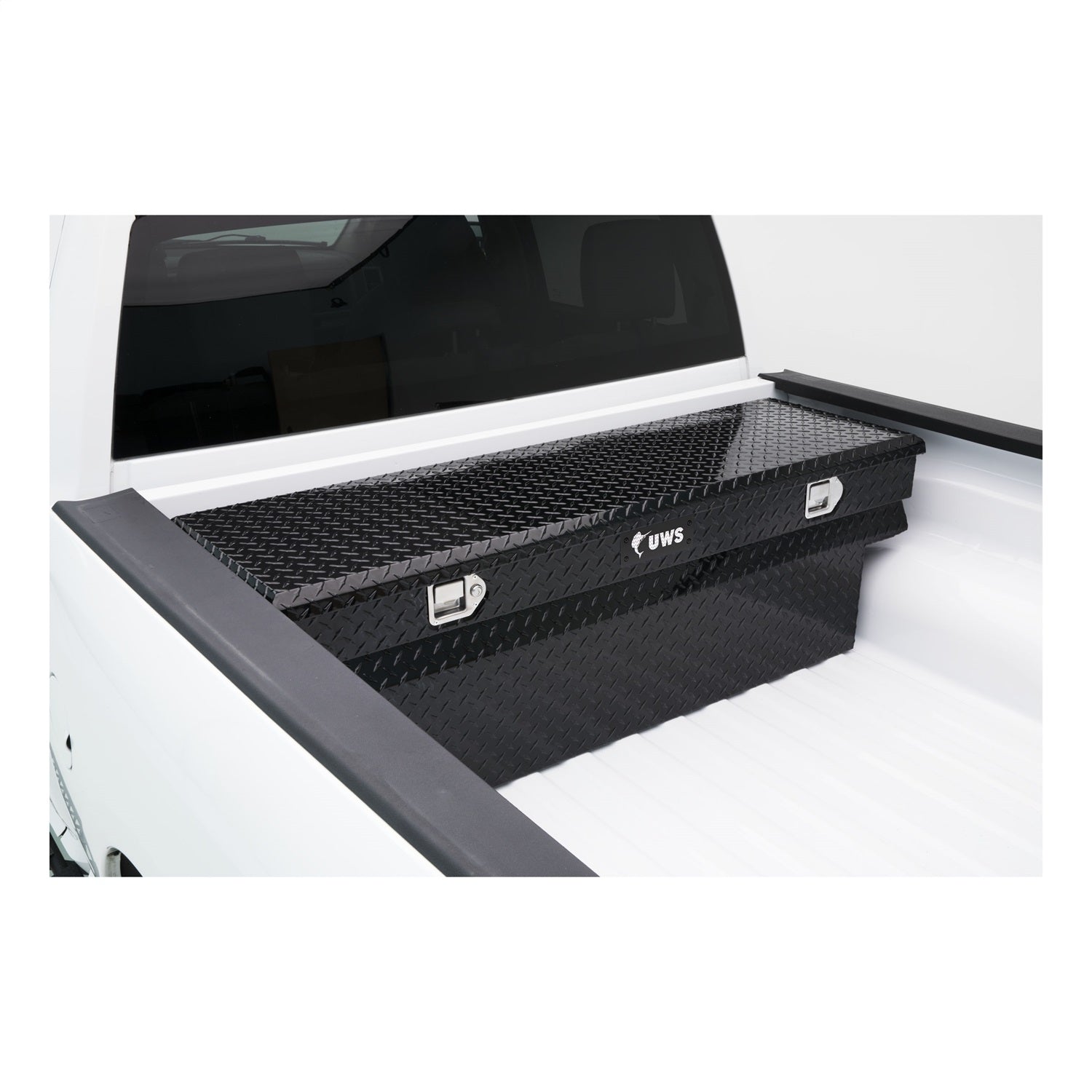 UWS notched utility chest boxes provide unbeatable storage and security for your items in the bed of your truck and on the jobsite. Each box features a corrosion-resistant aluminum construction, a stainless steel locking system and a patented RigidCore foam-filled lid -- all to keep your equipment and valuables safe, well-organized and easily accessible whenever needed. Each UWS truck tool box is constructed from extra-thick aluminum for increased structural strength. The tub is welded together into a single piece for weather resi stance and to easily hold heavy tools and other items. The lid features a patented foam core, sandwiched between two aluminum plates. This core greatly increases the rigidity of the lid and helps prevent bending and warping, making operation very smooth. The locking mechanism of the UWS truck tool box provides excellent security for your items, featuring stainless steel, key-operated paddle handles. Stainless steel construction supplies the locks with long-lasting corrosion resistance, and they feature an internal connecting rod that allows the lid to be opened from either side of the truck. For solid protection against the elements, the lid also has a MicroSeal gasket, blocking moisture, dust and insects from getting inside and damaging your valuables. The lid also opens a full 90 degrees for easier access, and it is equipped with self-opening struts for convenient operation when your hands are full. UWS utility chest boxes are available in multiple sizes to accommodate any storage need. Like all UWS products, each one is proudly assembled right here in the USA for style and long-lasting dependability.