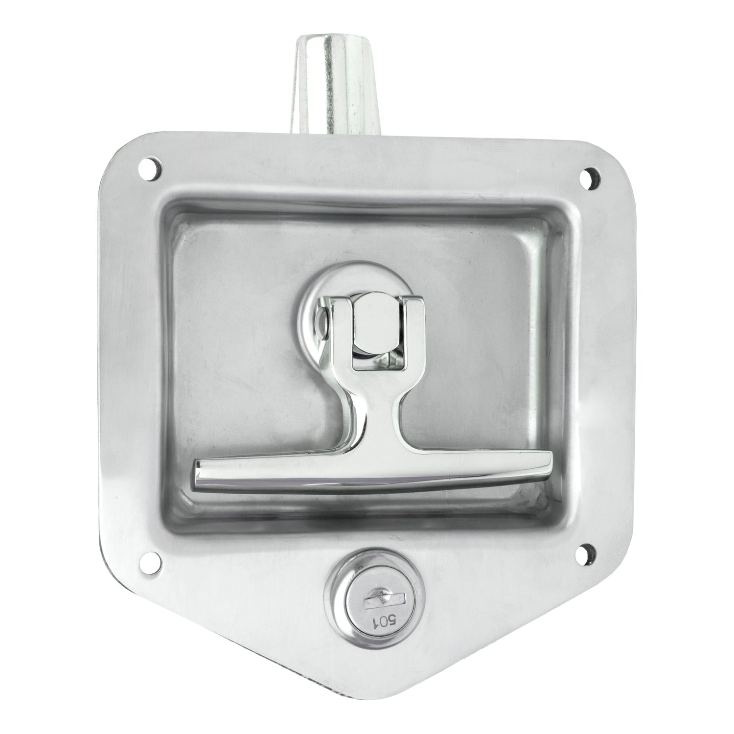 This folding T-handle is designed to be a replacement for any UWS topside or underbody tool box. It features a key-operated lock for added box security, and the T-handle itself can be folded in when not in use to eliminate obstructions. The handle and assembly are constructed from polished stainless steel for excellent corrosion resistance. Some rivet installation is required. One handle is included per package.