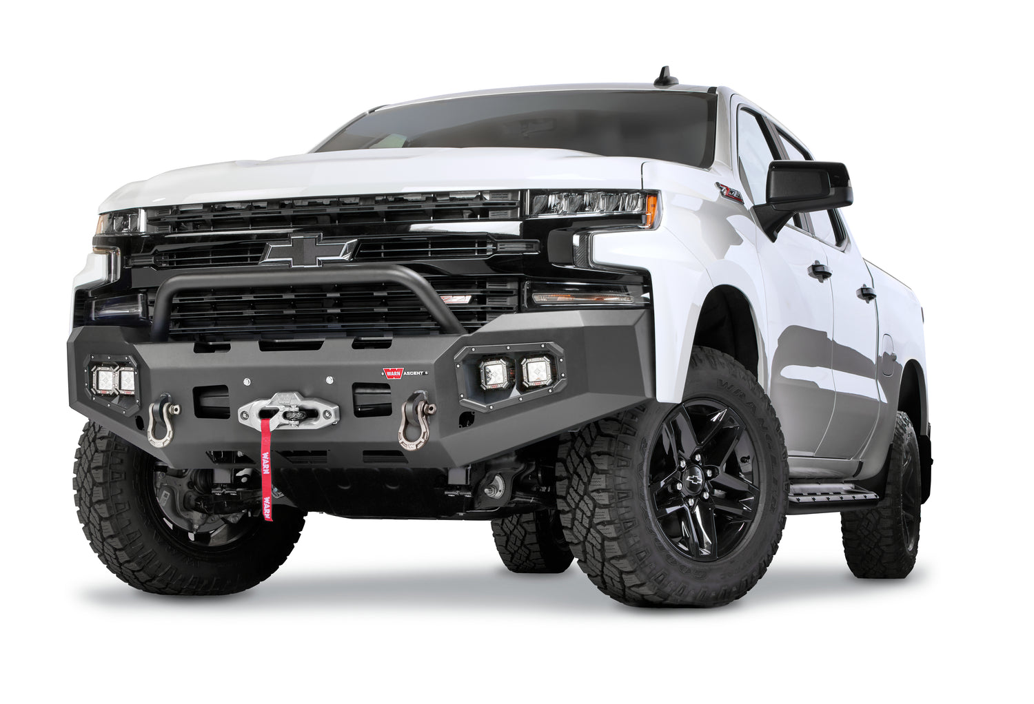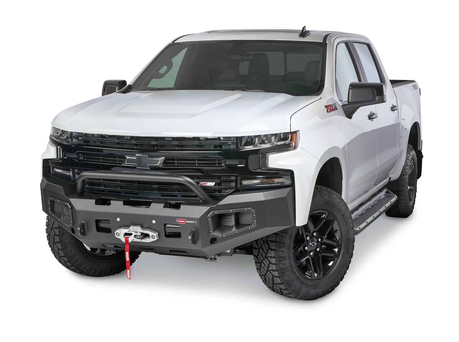 Ascent Front Bumper for Chevrolet Silverado 1500 featuring an integral winch mount for WARN mid-frame winches