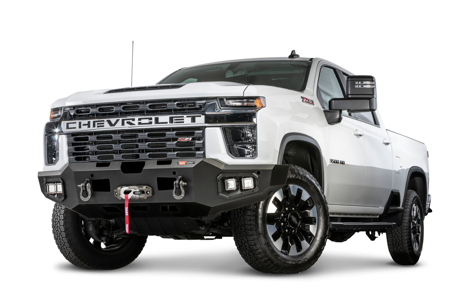 Ascent Front Bumper for Chevrolet Silverado 2500HD and 3500HD featuring an integral winch mount for WARN mid-frame winches