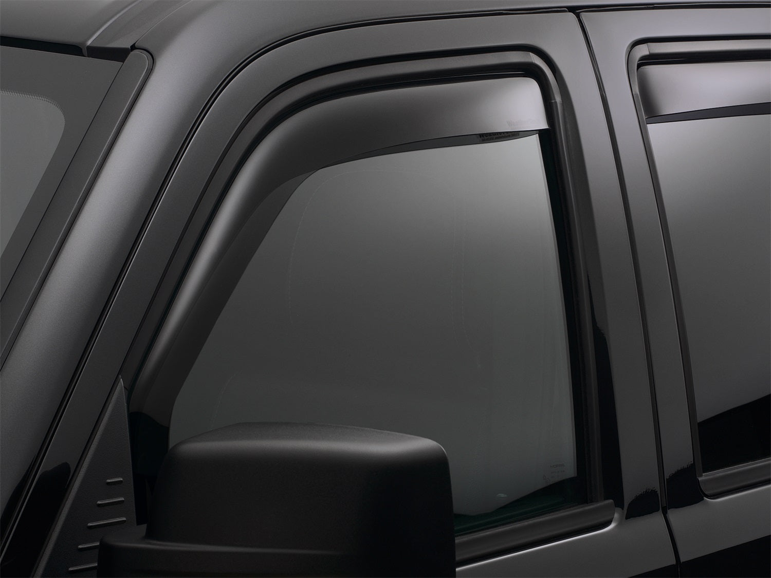 WeatherTech® Side Window Deflectors offer you fresh air enjoyment with an original equipment look. They are crafted in Germany from the finest 3mm lightly-tinted acrylic material available. Installation is quick and easy, with no exterior tape needed. WeatherTech® Side Window Deflectors are precision-machined to perfectly fit your vehicle. These low profile window deflectors help to reduce wind noise and allow interior heat to escape. Also available in dark tint for most vehicles. 3 year warranty.