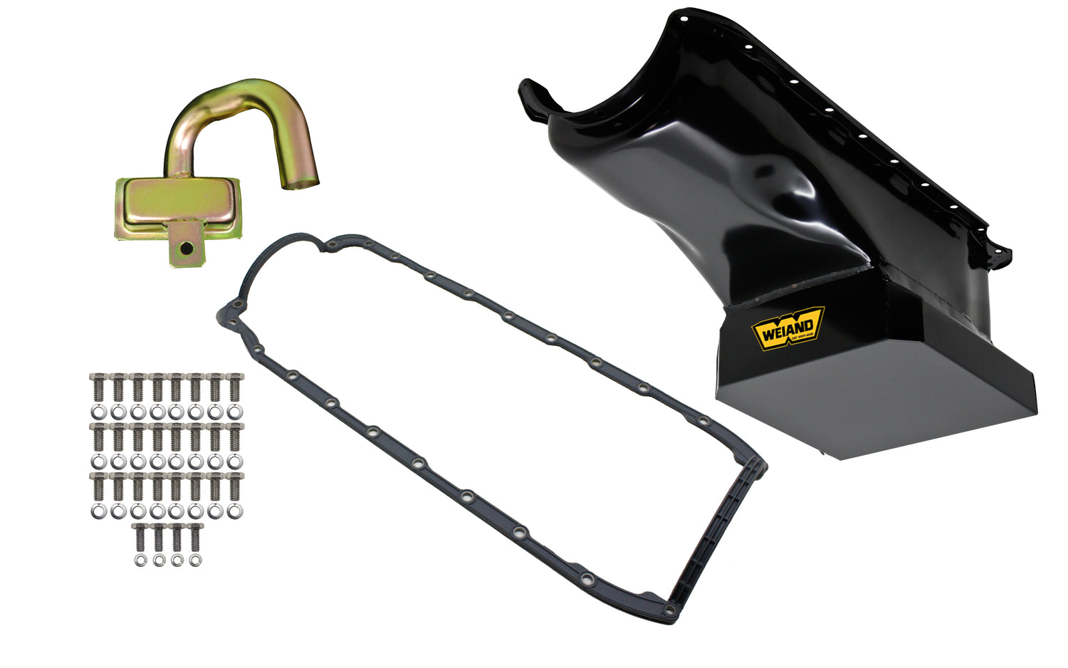 - Oil Pan Kit comes complete with the following: application specific oil pan, oil pan gasket, oil pump pickup and pan mounting bolt kit