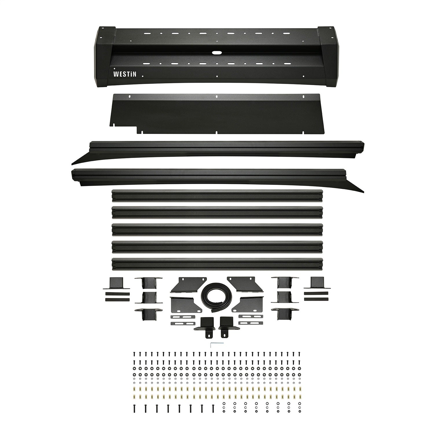 Introducing the all-new Westin Mesa Roof Rack, the ultimate companion for adventure enthusiasts and outdoor explorers! Crafted with precision engineering using high-quality extruded aluminum. This premium material offers unparalleled strength, durability, and corrosion resistance, making it the perfect choice for outdoor enthusiasts seeking a reliable and long-lasting roof rack. The multi-purpose cargo management system of the Westin Mesa Roof Rack is designed with flexibility in mind. Its 2.5in. x 1.5in. adjustable crossbars allow you to customize the setup according to the size and shape of your cargo. It features a removable 16-gauge aluminum wind deflector panel and 11-gauge aluminum visor side frames that serves a dual purpose. First, the wind deflector enhances aerodynamics by redirecting airflow, reducing drag, and minimizing wind noise during your travels. Enjoy a quieter and more fuel-efficient journey, all while maintaining a sleek and stylish appearance. Second, removing the wind deflector panel reveals a convenient light mount channel. This innovative design feature allows you to easily install auxiliary lighting to illuminate your path during nighttime adventures or low-light conditions enhancing your visibility and safety. The Mesa Roof Rack is built to last and features an electrostatic base coat for superior corrosion resistance, in combination with a durable textured black powder coat finish. All Mesa Roof Racks come complete with all necessary hardware to provide a hassle-free installation, while providing a full 3-Year warranty. Whether you're planning a weekend camping trip, a cross-country road adventure, or simply need extra storage space for your gear, this roof rack is the perfect solution.