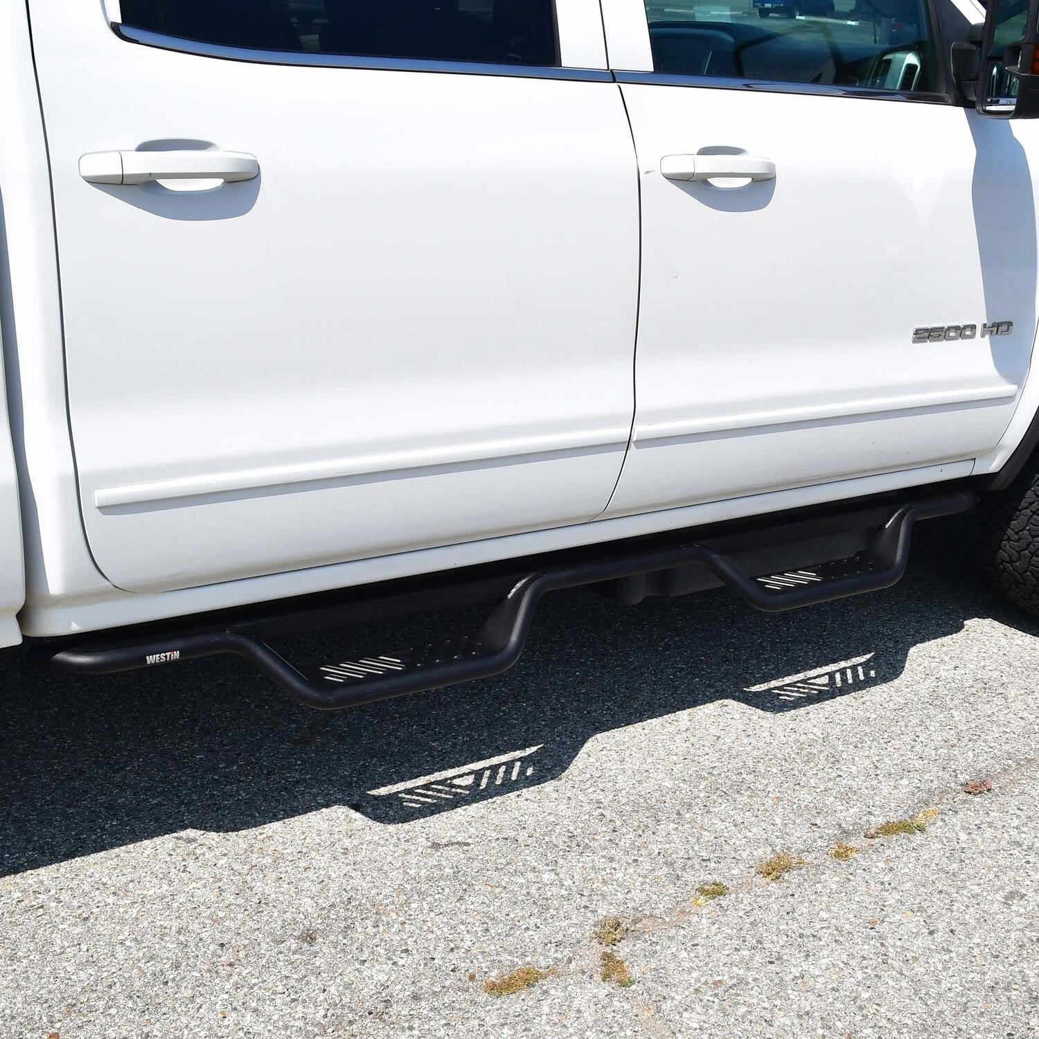 If you want a unique upgrade that makes accessing your truck, Jeep or SUV easier, Westin's Outlaw Drop Nerf Step Bars are the finishing touch you need. Crafted from mandrel bent 1.5' diameter steel tube and paired with a welded cab length top plate, these step bars are more than just an eye-catching accessory. The distinctive 4' drop step features a die-stamped step plate that makes it easy to knock the mud, dirt, and debris from your feet before you step into the cabin. Worried about compatibility' We've got you covered. From GM, Ram, and Toyota to Ford Trucks and even the newer 2 and 4 door Broncos, the Outlaw Drop Nerf Step Bars are designed to be a seamless fit. You can learn all about the benefits of adding nerf bars to your rig here. Durability' Check. Aided by an electrostatic base coat, these bars are resistant to corrosion. They're finished with corrosion-resistant textured powder-coat (even in the stainless finish option) and feature a die-stamped stainless steel step area which makes them ruggedly appealing and able to withstand the elements. No tedious installations here ' the Outlaw Drop Nerf Step Bars install with a bolt-on installation process that doesn't require any drilling. Plus, all the necessary hardware and mounting brackets are included in the package. These step bars are backed by the confidence of Westin's full 3-year warranty. If you're in the market for a practical and stylish nerf step with a blend of premium features, these side steps might just be your next buy. Contact us if you have any questions - we're happy to help.