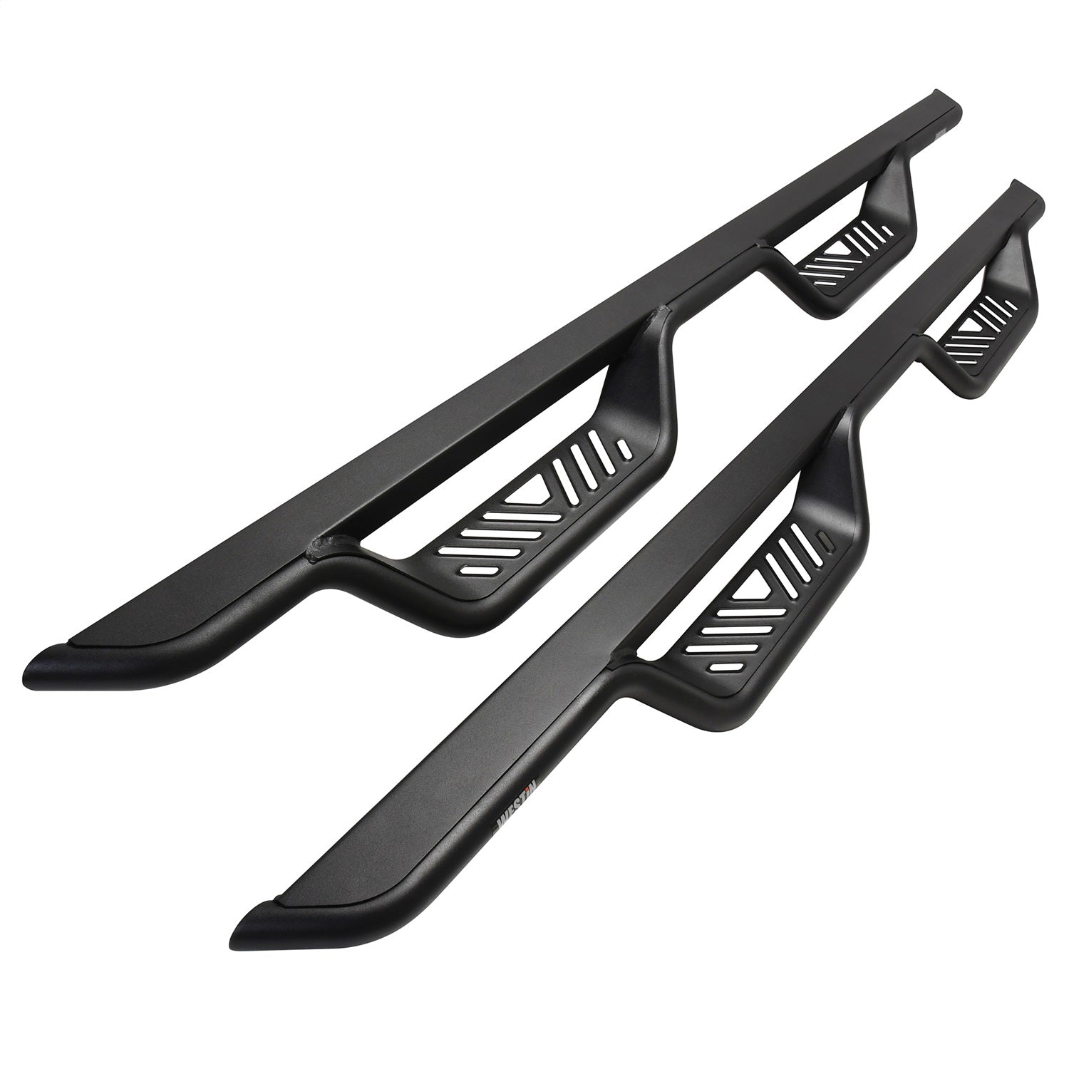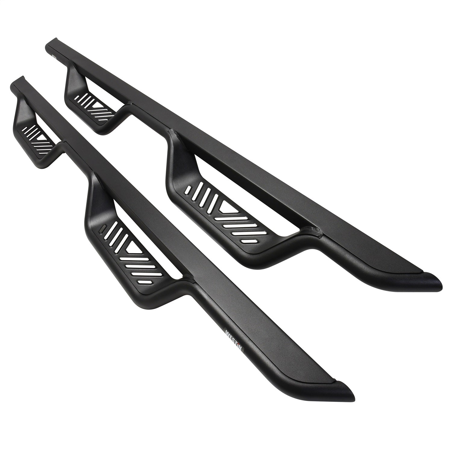 If you want a unique upgrade that makes accessing your truck, Jeep or SUV easier, Westin's Outlaw Drop Nerf Step Bars are the finishing touch you need. Crafted from mandrel bent 1.5' diameter steel tube and paired with a welded cab length top plate, these step bars are more than just an eye-catching accessory. The distinctive 4' drop step features a die-stamped step plate that makes it easy to knock the mud, dirt, and debris from your feet before you step into the cabin. Worried about compatibility' We've got you covered. From GM, Ram, and Toyota to Ford Trucks and even the newer 2 and 4 door Broncos, the Outlaw Drop Nerf Step Bars are designed to be a seamless fit. You can learn all about the benefits of adding nerf bars to your rig here. Durability' Check. Aided by an electrostatic base coat, these bars are resistant to corrosion. They're finished with corrosion-resistant textured powder-coat (even in the stainless finish option) and feature a die-stamped stainless steel step area which makes them ruggedly appealing and able to withstand the elements. No tedious installations here ' the Outlaw Drop Nerf Step Bars install with a bolt-on installation process that doesn't require any drilling. Plus, all the necessary hardware and mounting brackets are included in the package. These step bars are backed by the confidence of Westin's full 3-year warranty. If you're in the market for a practical and stylish nerf step with a blend of premium features, these side steps might just be your next buy. Contact us if you have any questions - we're happy to help.