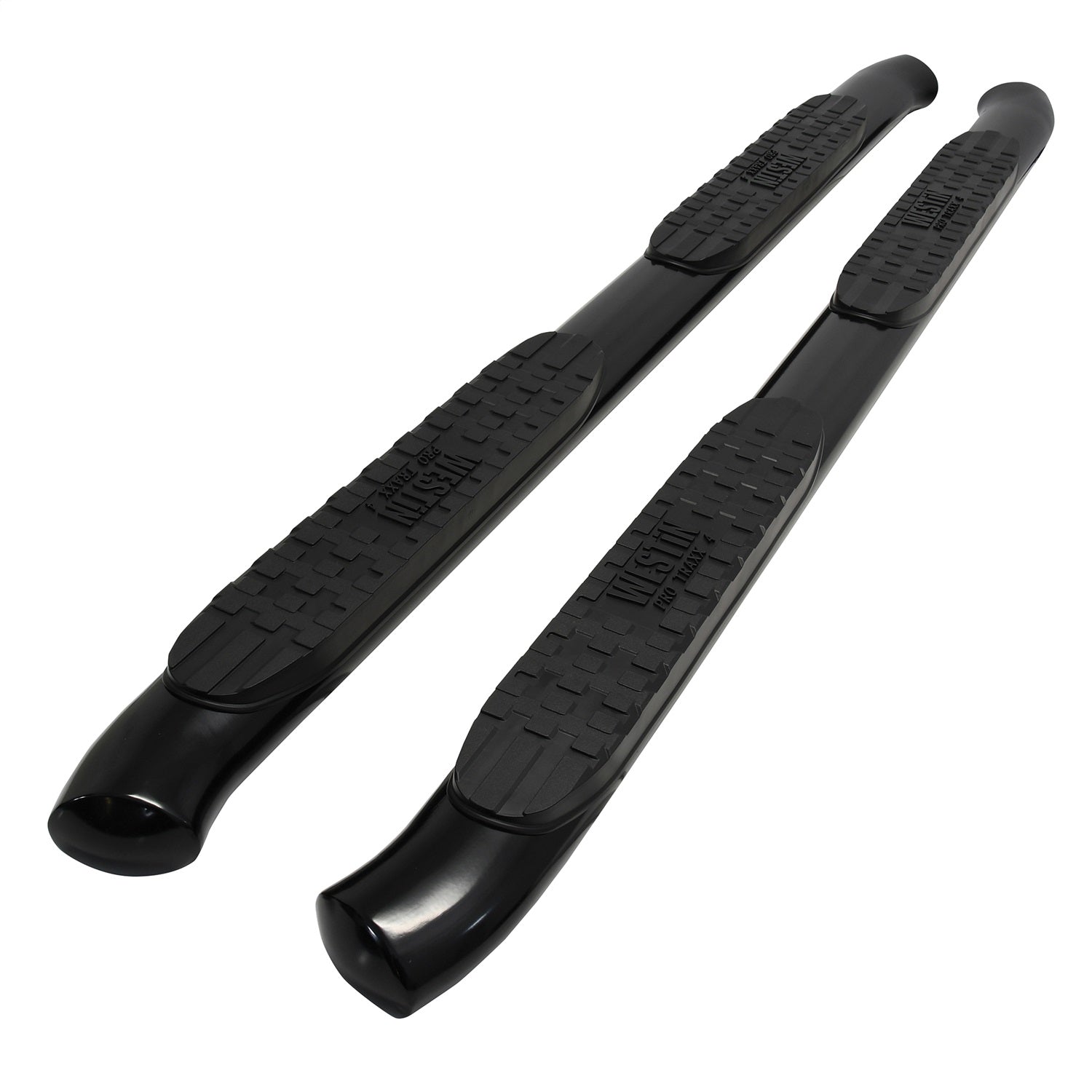 Westins Pro Traxx 4 Oval Nerf Step Bars feature a 4in. oval tube with a heavy-duty step pad that provides a wider and more secure step area. They feature 30 factory style bends that have seamless domed ends so there are no end-caps or exposed bolt heads. Applications are bolt-on installation.
