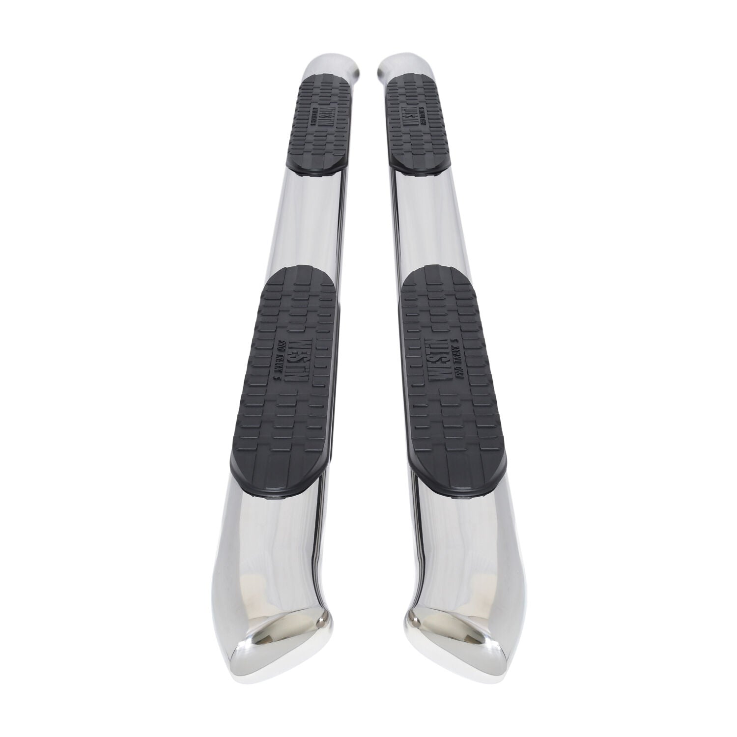 Westins Pro Traxx 5 Oval Nerf Step Bars feature a 5in. oval tube with a heavy-duty step pad that provides a wider and more secure step area. They feature 30 factory style bends that have seamless domed ends so there are no end-caps or exposed bolt heads. Applications are bolt-on installation.
