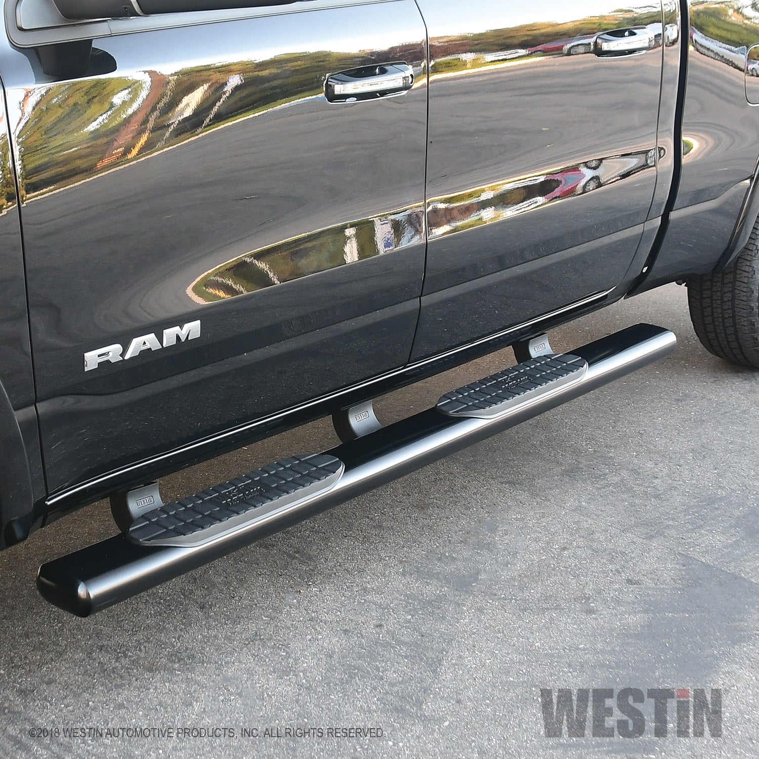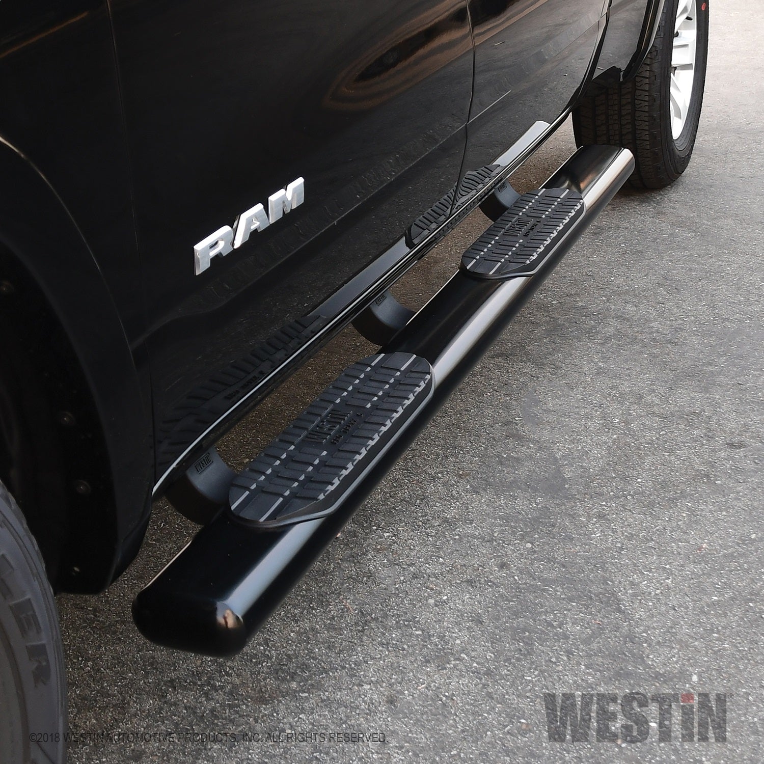 Westin PRO TRAXX 6 for full-sized trucks are cab-length steps for ideal functionality and cab access. They feature extra heavy-duty bold step pads and a unique oval tube shape in a straight tube design. Applications are vehicle specific bolt-on, no-drill and rocker panel mounted. Available in polished stainless steel, backed by a lifetime warranty, and black powder coated mild steel, backed by a 3 year warranty.