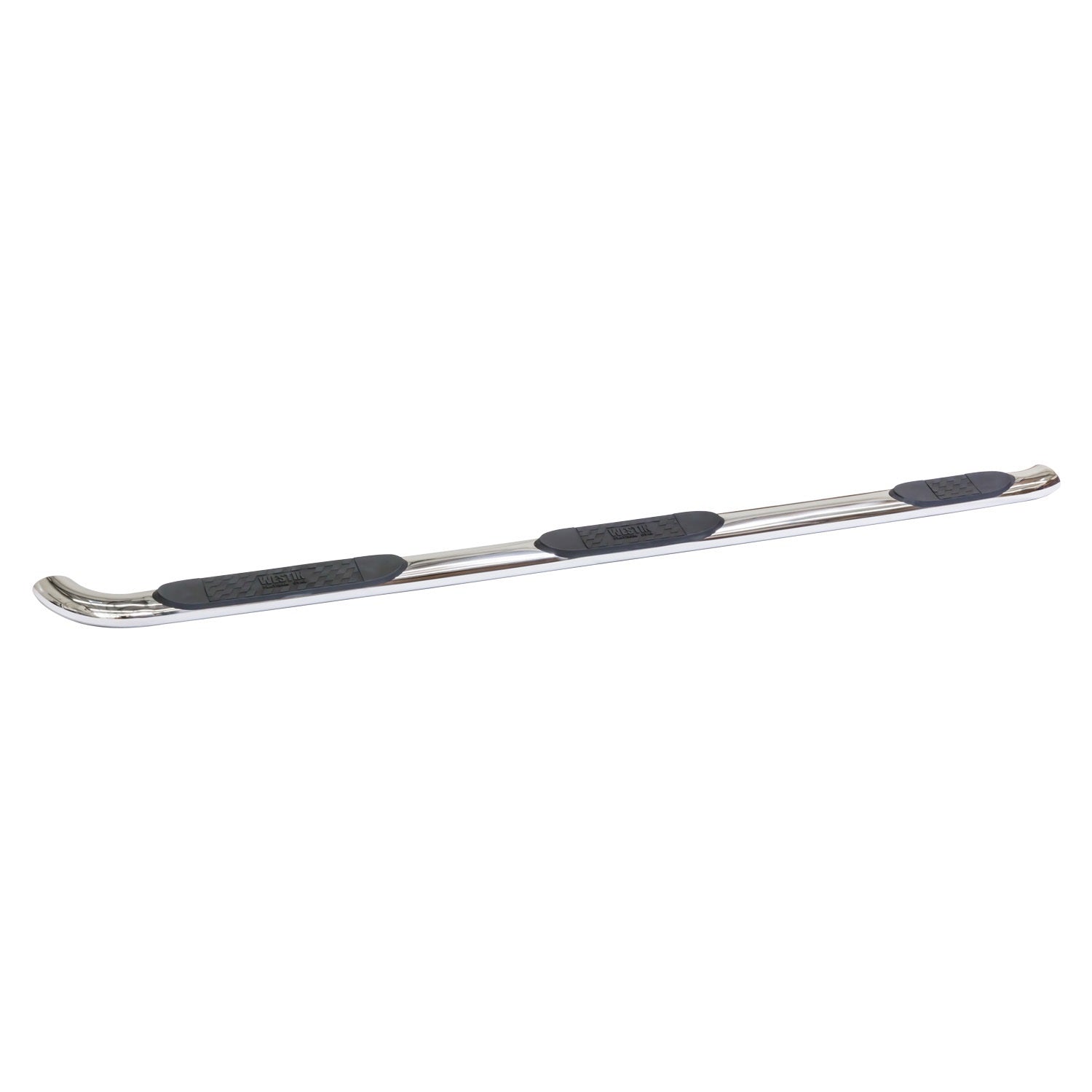 90 degree mandrel bends. 4 in. wide step pad. 4.25 inches wide at widest dimension. Polished stainless steel. Mount kit included. Lifetime warranty.