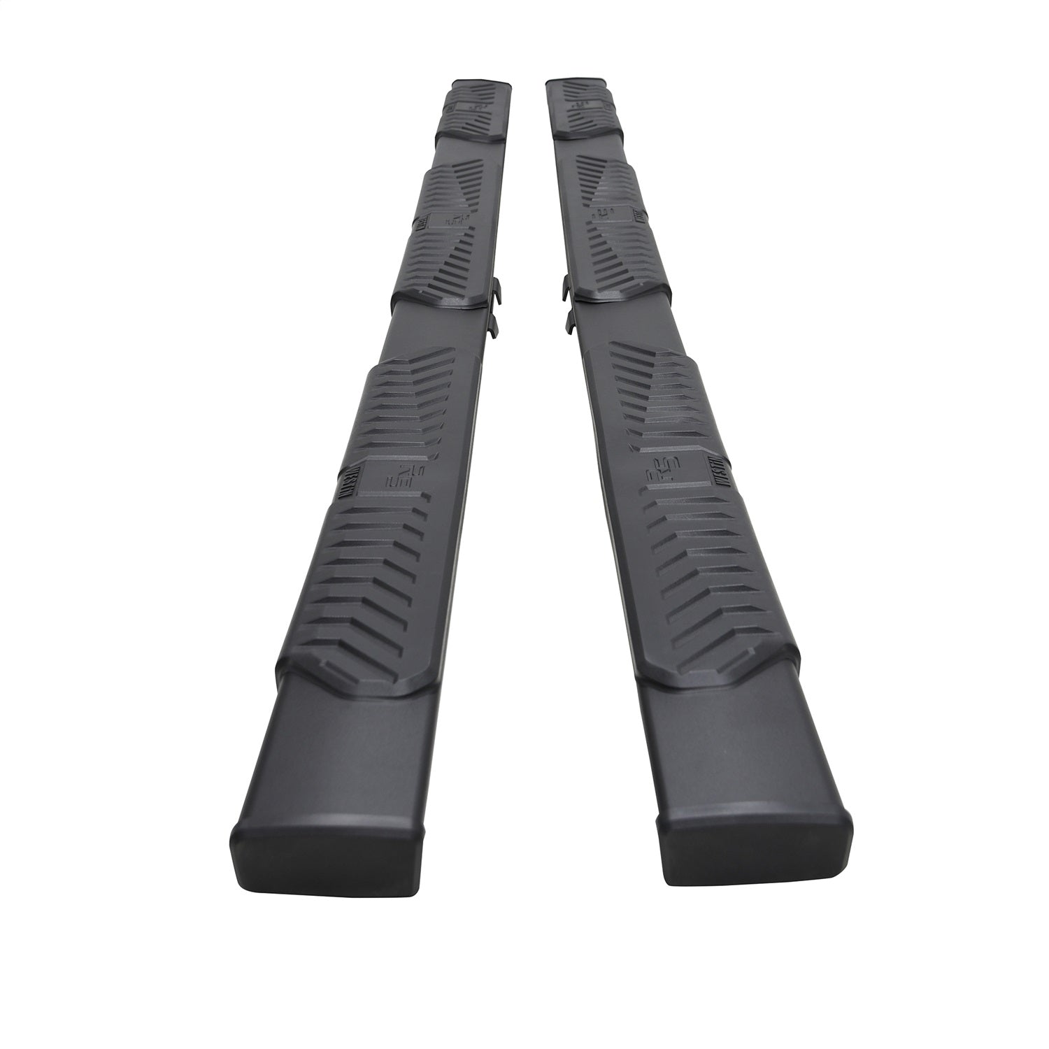Get a boost, with Westins R5 M-Series Wheel-To-Wheel Nerf Step Bars. The extra wide 5in. footprint step design provides easier and safer vehicle access for both drivers and passengers. Developed and engineered in the USA, the R5 M-Series Wheel-to-Wheel Nerf Step Bars feature three oversized skid resistant step pads allowing easy access to the vehicle cab or truck bed cargo area. Built with high-grade and corrosion resistant steel designed to mount directly to your vehicles existing rocker panels. The modular design saves you money on shipping, as no truck freight costs are required. Also included are injection molded bracket covers for a clean and stylish look. Westins exclusive Isolator Bracket supports the step bar past the truck cab, a feature that competitors do not offer. Without an Isolator Bracket, the step area that extends past the vehicle is left unsupported. Westins unique design provides added bar support without resulting in annoying creaking sounds.