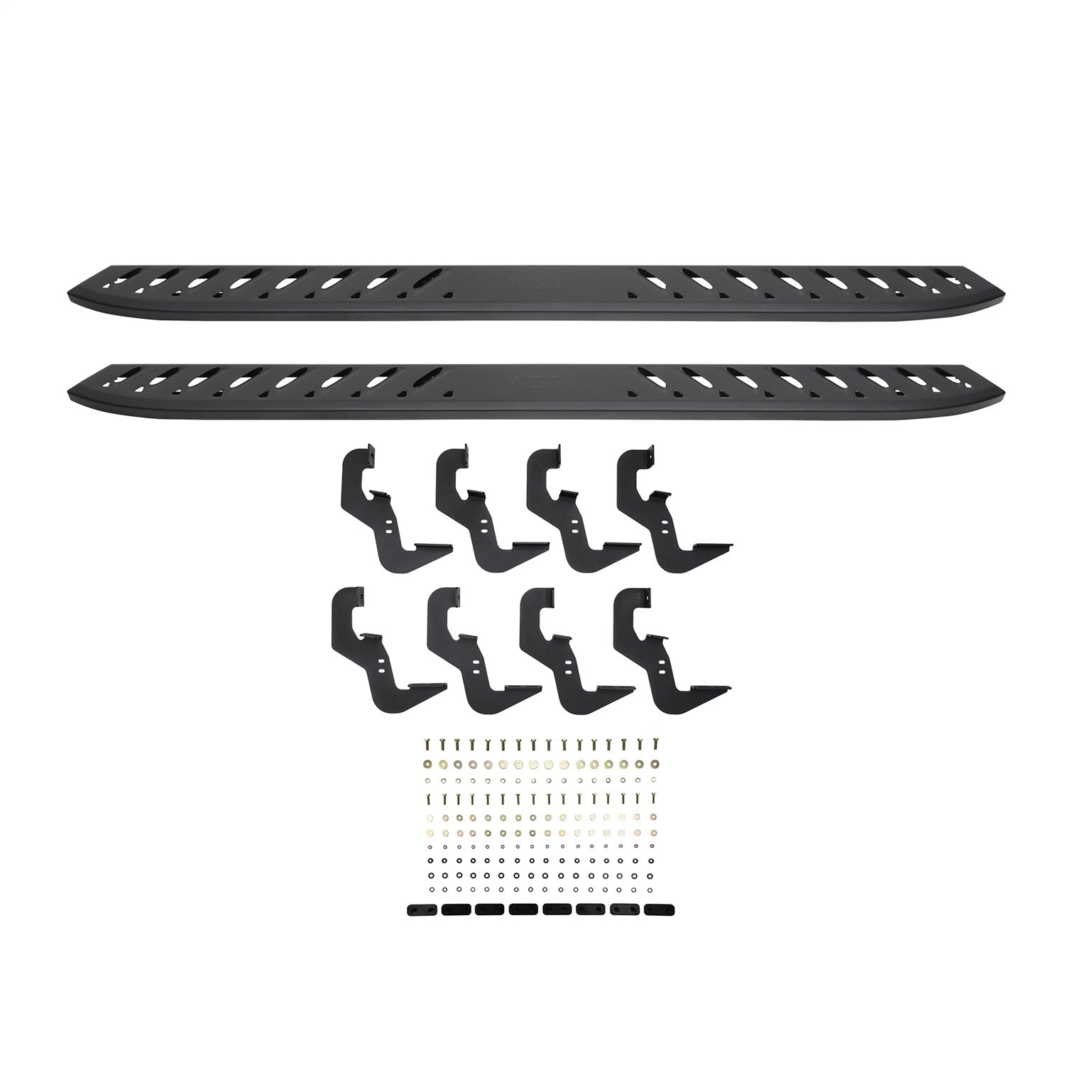 Westin Thrasher Boards are made of a 1-piece stamped steel construction. The boards are an aggressive Pre-Runner style and feature indented louvers along the step area. Thrasher Boards have a textured black powder coat finish and include injection molded bracket covers for a finished look.