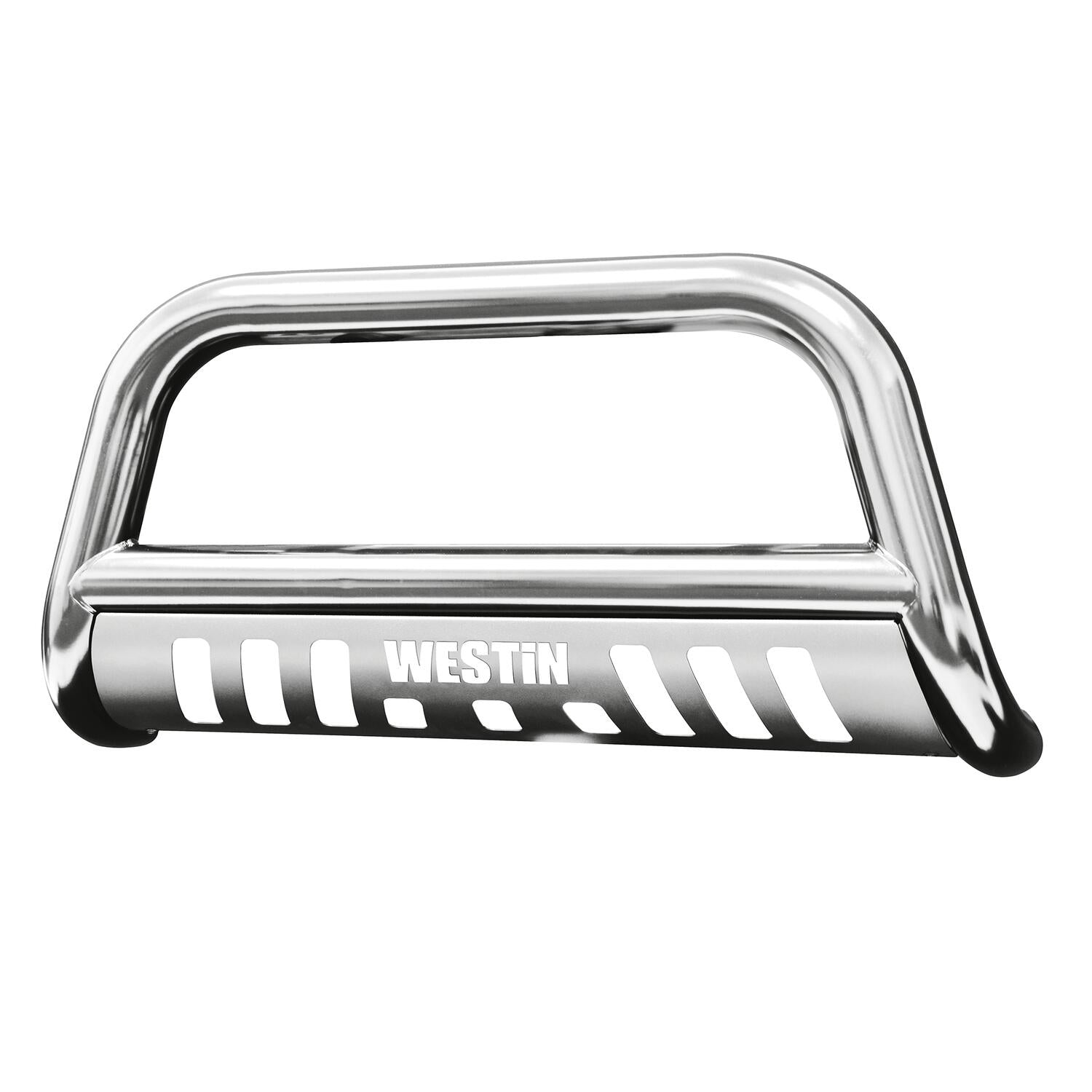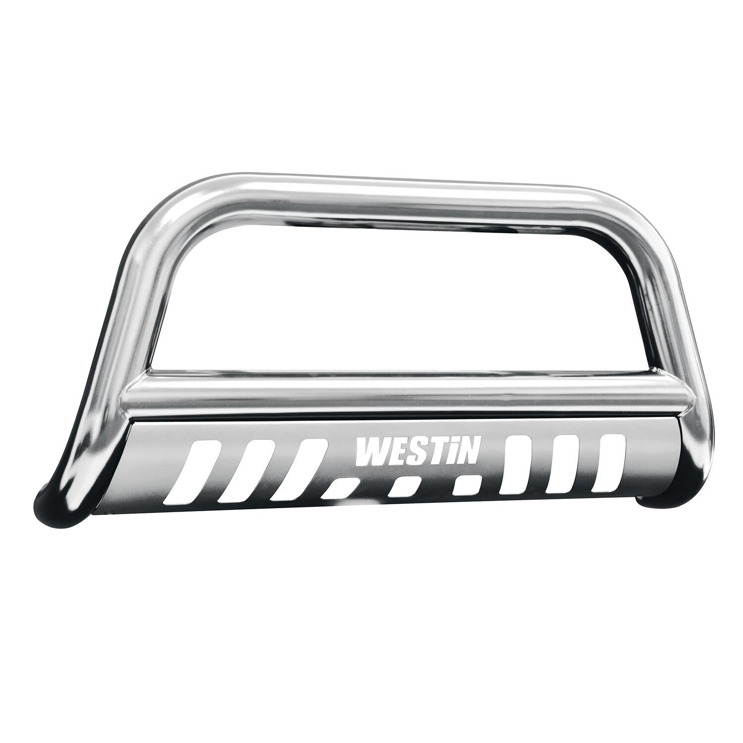 Westin(TM) E-Series Bull Bars are a front-end light bar designed for trucks and larger model SUVs. It is made of 3 diameter polished stainless steel tube. It mounts utilizing existing vehicle mounting points and installation does not require any drilling to the vehicle frame. Comes complete with mounting kit the Westin(TM) E-Series Bull Bar provides a mounting point for 2 auxiliary lights up to 6 in diameter. It features a die-cut Westin(TM) block logo design on the stainless steel skid plate unique to the Westin(TM) E-Series Bull Bar.