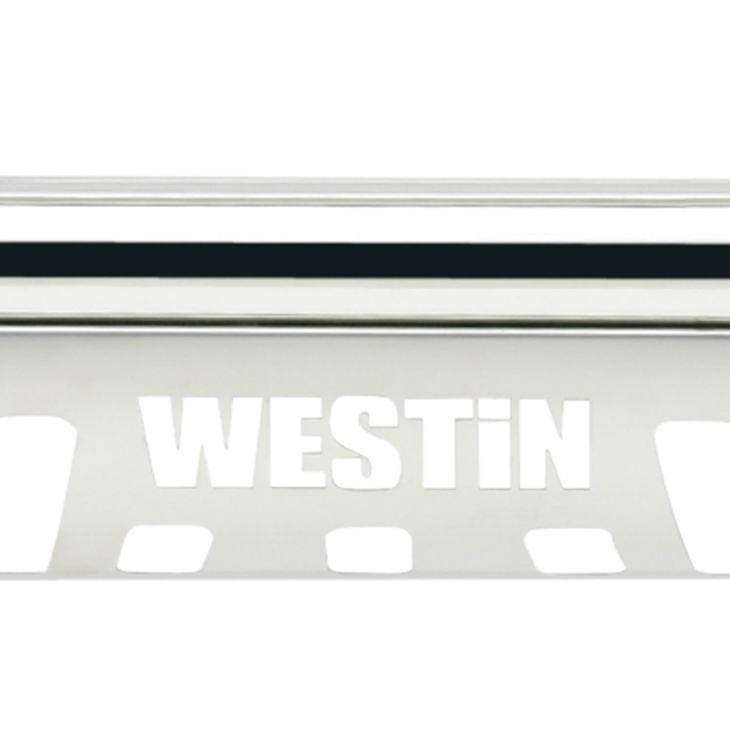 Westin(TM) E-Series Bull Bars are a front-end light bar designed for trucks and larger model SUVs. It is made of 3 diameter polished stainless steel tube. It mounts utilizing existing vehicle mounting points and installation does not require any drilling to the vehicle frame. Comes complete with mounting kit the Westin(TM) E-Series Bull Bar provides a mounting point for 2 auxiliary lights up to 6 in diameter. It features a die-cut Westin(TM) block logo design on the stainless steel skid plate unique to the Westin(TM) E-Series Bull Bar.