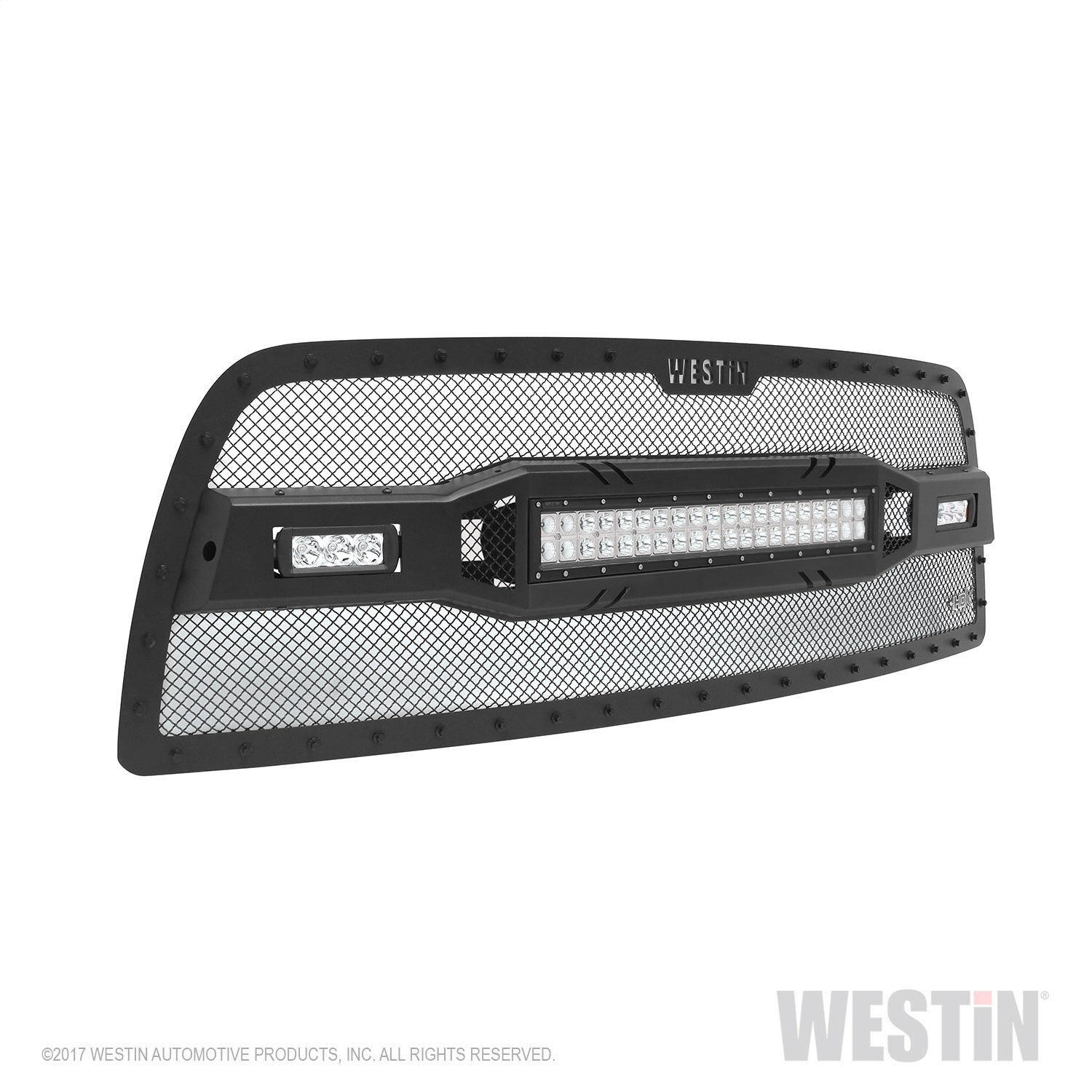 Westin's HDX LED Grille gives your truck the style and function it needs to stand out wherever your ride takes you. Our HDX LED grille features an 11 gauge steel frame plus LED housing made of 16 gauge steel. LED lights are included so you'll have everything you need to get your adventure started both on and off the road. Westin's HDX LED Grille also offers black rivets to give your vehicle an aggressive look, and easy bolt-on installation so no drilling is required. Product is available in sleek textured black finish.