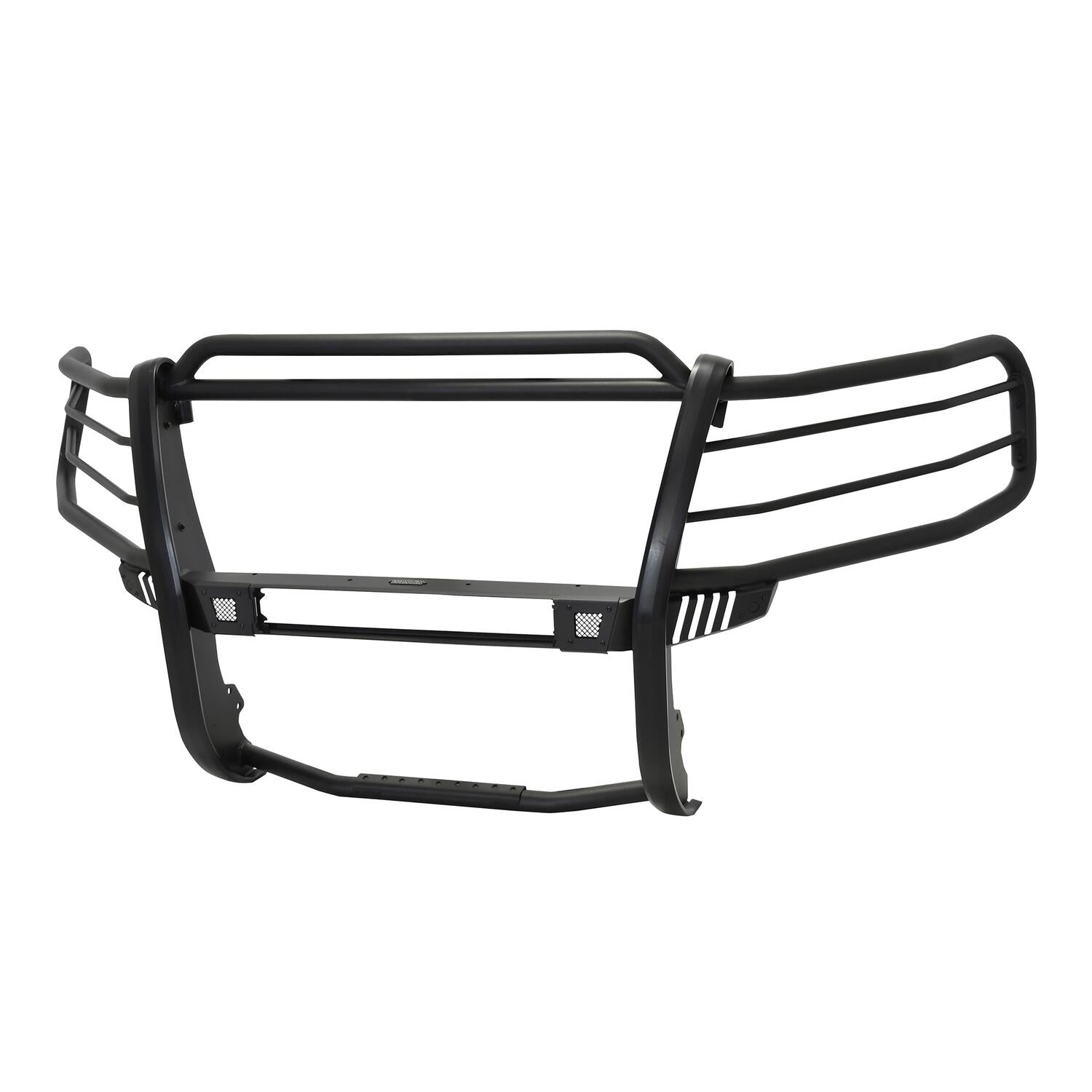 Westins Sportsman X Grille Guard effectively combines aggressive styling with heavy duty front end protection. Engineered to provide both great looks and performance, Sportsman Xs unique design compliments todays larger grille designs, and is available to fit most full and mid size truck applications. Sportsman X has an optional detachable mesh panel (sold separately) which is specifically designed to fit the opening in the center section of Sportsman X Grille Guard, or can be removed to accommodate the flush mounted 26 in. dual row LED light bar (sold separately). A smaller removable mesh panel designed for the factory sensor location opening is included as standard with Sportsman X. For specific Chevy and Dodge/RAM applications a Sportsman X Sensor Kit (sold separately) is available. An exterior step plate is located on the 1-5/8 in. bottom tube to provide easy access to the engine compartment. Built with heavy duty 2-1/4 in. upright rubber strips and 1- 5/8 in. outer tubes, Sportsman X Grille Guard is designed to provide protection and style for years to come.