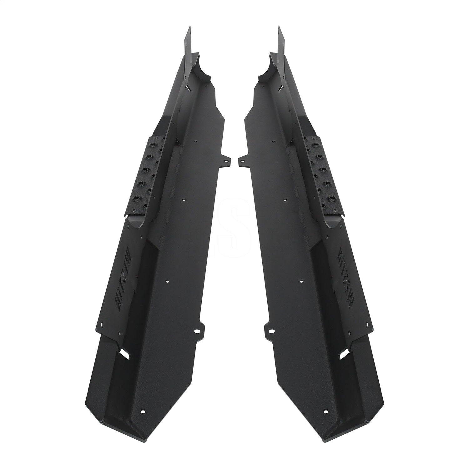 Westin Snyper Rock Sliders are made to protect the Jeeps rocker panel while providing a fully functional step. They mount tight to the rocker panel which provides maximum off-road ground clearance. Step areas feature heavy textured epoxy non-skid step area for maximum traction. They also feature two off-road jack points. Available for 2 door and 4 door Jeep(R) Wrangler JK.
