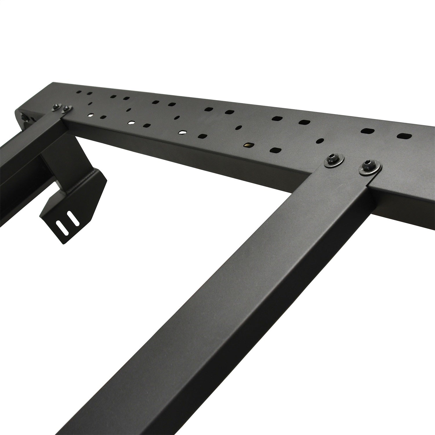 Maximize the cargo space and storage capacity of your truck with an all new Overland Cargo Rack from Westin. This multi-purpose bed rack "cargo management system" allows for a wide variety of off-road and overland gear storage, such as off-road jacks, RotoPaxTM gas cans , traction boards, shovels, rooftop tents, LED lighting and storage boxes, with multiple mounting positions and options. Constructed of 4in. rectangular tubing and 14 gauge steel, this unique design utilizes the OEM bed rails for a no-drill mounting which is incredibly strong, but lightweight and easy to install. The low profile design was engineered to keep the cargo gear below the cab roofline, positioning most roof top tents to be flush with the top of the cab roof to reduce wind resistance and allow for easier garage parking. You can choose your preferred rack length (available in either 45in. or 57in. options), and top support rails which can be mounted in multiple positions as needed. It can also accommodate a wide variety of roof top tent footprints, making the Overland Cargo Rack perfect for any back country adventure.