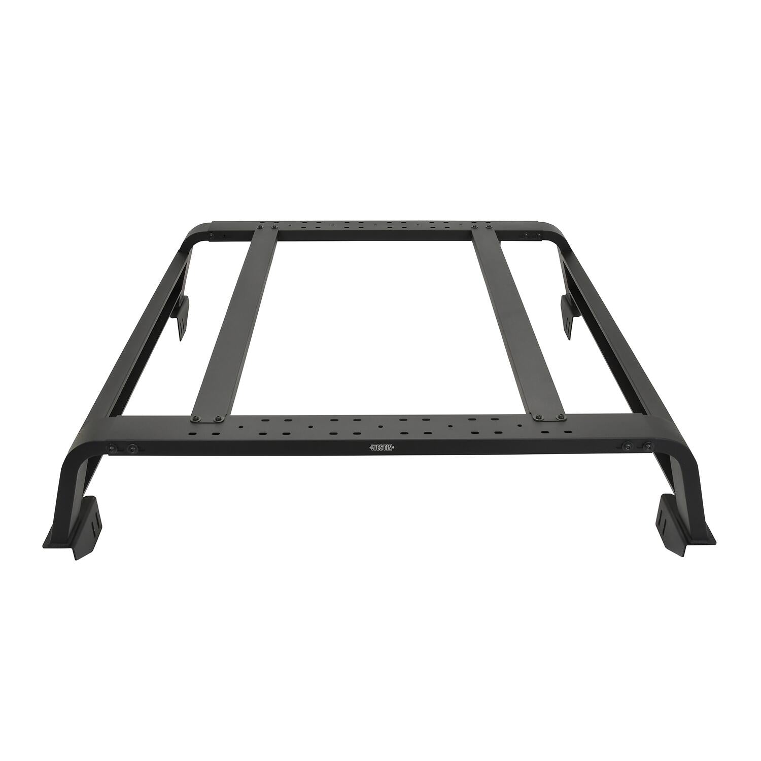 Maximize the cargo space and storage capacity of your truck with an all new Overland Cargo Rack from Westin. This multi-purpose bed rack "cargo management system" allows for a wide variety of off-road and overland gear storage, such as off-road jacks, RotoPaxTM gas cans , traction boards, shovels, rooftop tents, LED lighting and storage boxes, with multiple mounting positions and options. Constructed of 4in. rectangular tubing and 14 gauge steel, this unique design utilizes the OEM bed rails for a no-drill mounting which is incredibly strong, but lightweight and easy to install. The low profile design was engineered to keep the cargo gear below the cab roofline, positioning most roof top tents to be flush with the top of the cab roof to reduce wind resistance and allow for easier garage parking. You can choose your preferred rack length (available in either 45in. or 57in. options), and top support rails which can be mounted in multiple positions as needed. It can also accommodate a wide variety of roof top tent footprints, making the Overland Cargo Rack perfect for any back country adventure.