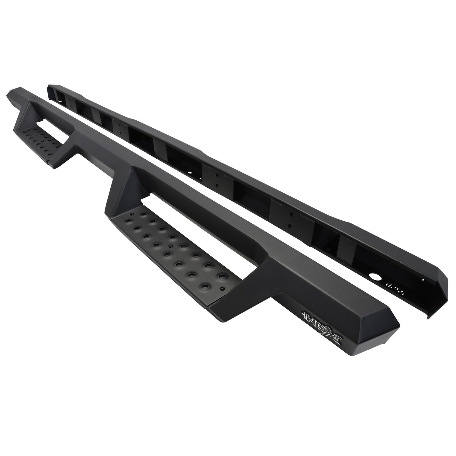 Westins HDX Drop Nerf Step Bars provide the rugged look and function that truck owners need and want. They feature a solid 1-piece steel construction and heavy duty punch plates creating high traction step areas. The HDX Drop Nerf Step Bars also feature Westins notched bar design which provides more than 2in. of additional toe/heel placement versus competitive brands. Available in a textured black finish that complements Westin HDX Bumpers. The HDX Drop Steps have vehicle specific applications and include a vehicle specific mount kit, installation hardware and instructions.