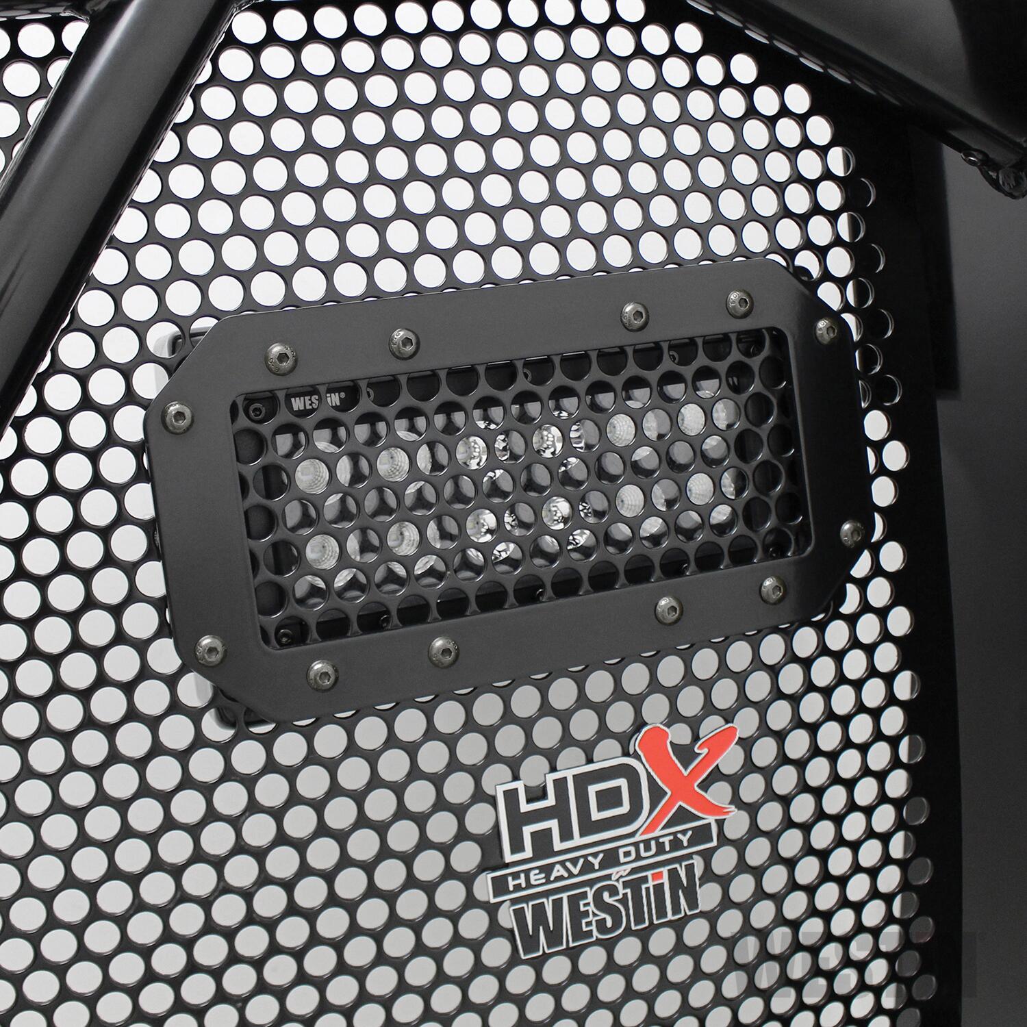 The HDX Flush Mount LED Kit with 6 B-FORCE LED Light Bars features flush mount faceplates that install directly onto the punch plate grille of Westins HDX Grille Guard. Choose the installation method that best suits your desired LED light presentation. Cut-out punch plate or direct bolt-on. Kit also includes adjustable slider brackets, dual connecting wiring harness, and mounting hardware.