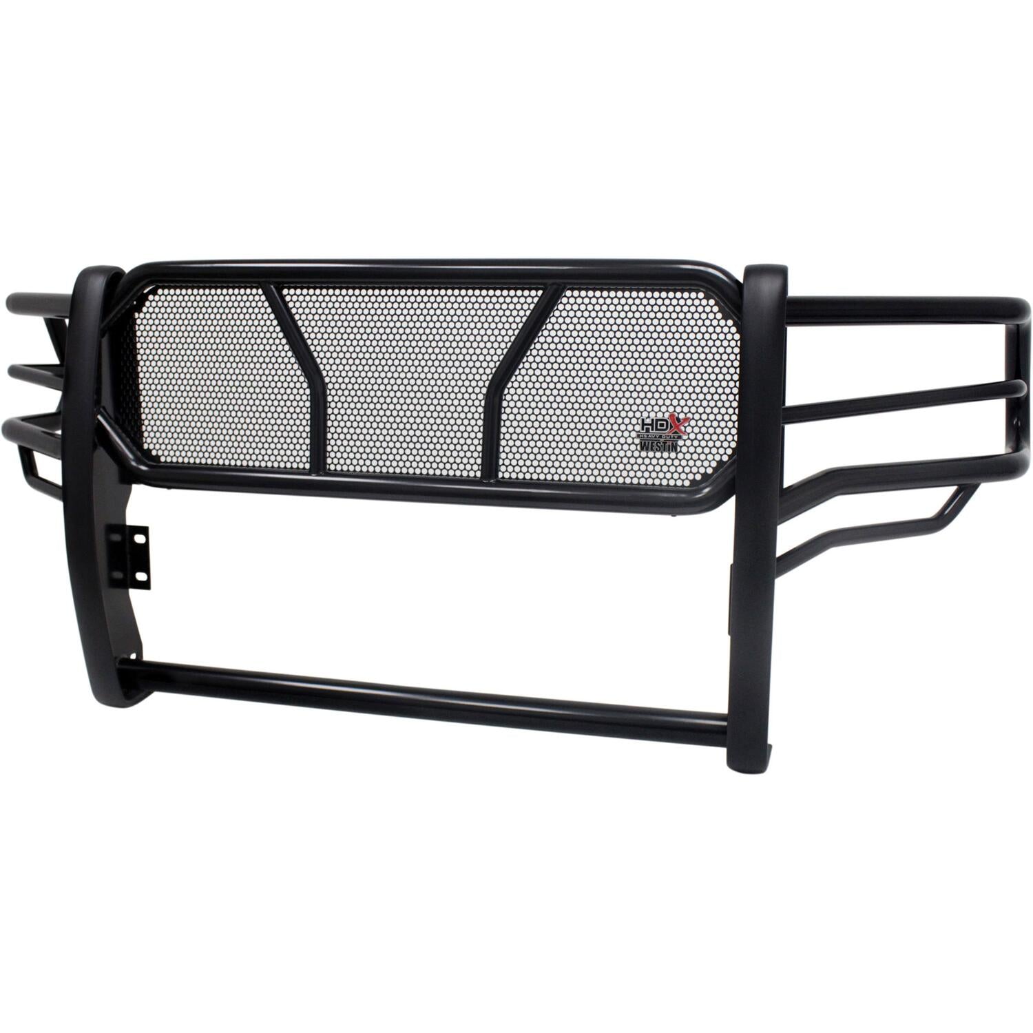 The HDX Grille Guard is the ultimate in extreme truck gear. Its a fully welded 1-piece grille guard that features full wraparound wings made of heavy duty 2in. diameter tube. Uprights are finished and protected with extra wide rubber that is 1/8in. thick and 2 3/4in. wide resulting in a solid clean look. The full punch plate grille protects the vehicles grille area. HDX Grille Guards are available in stainless and black powder coat finish.