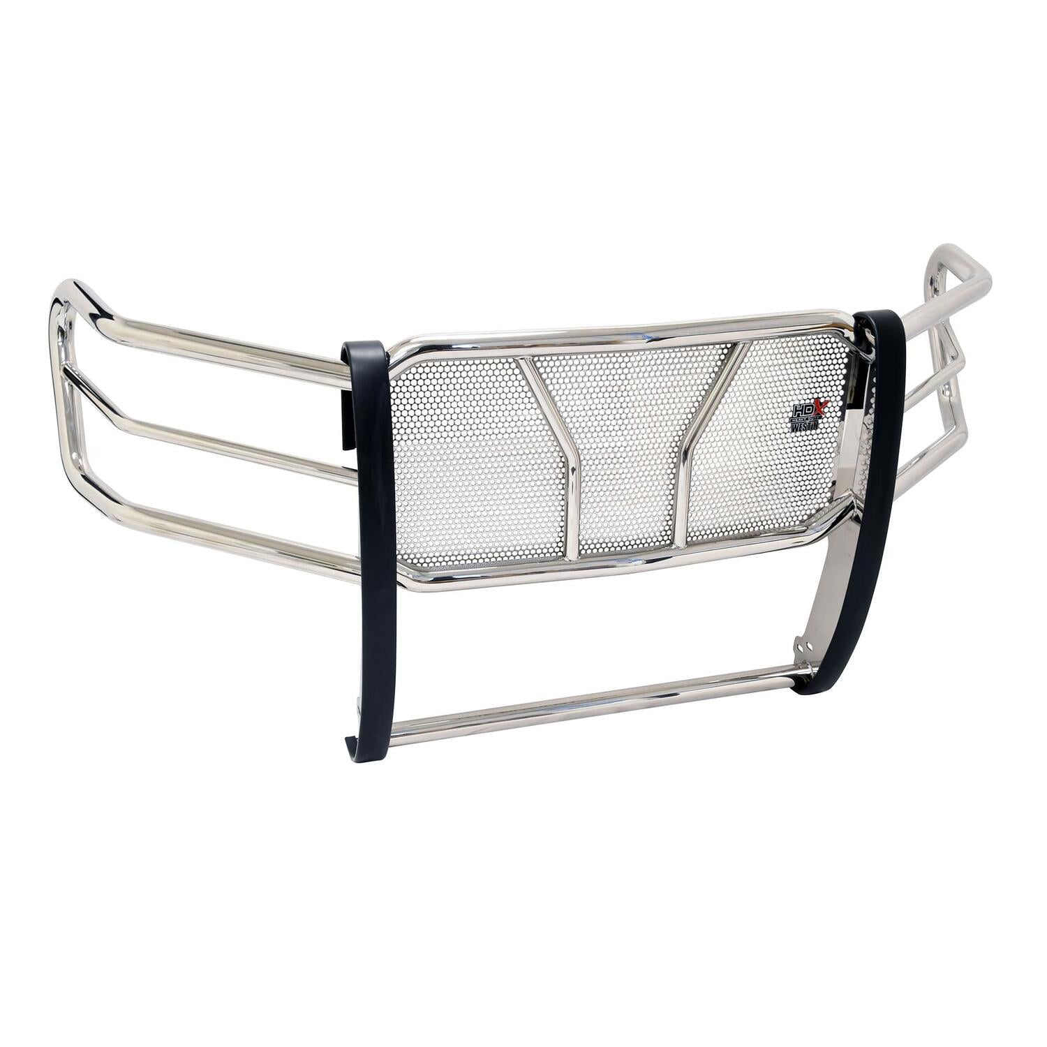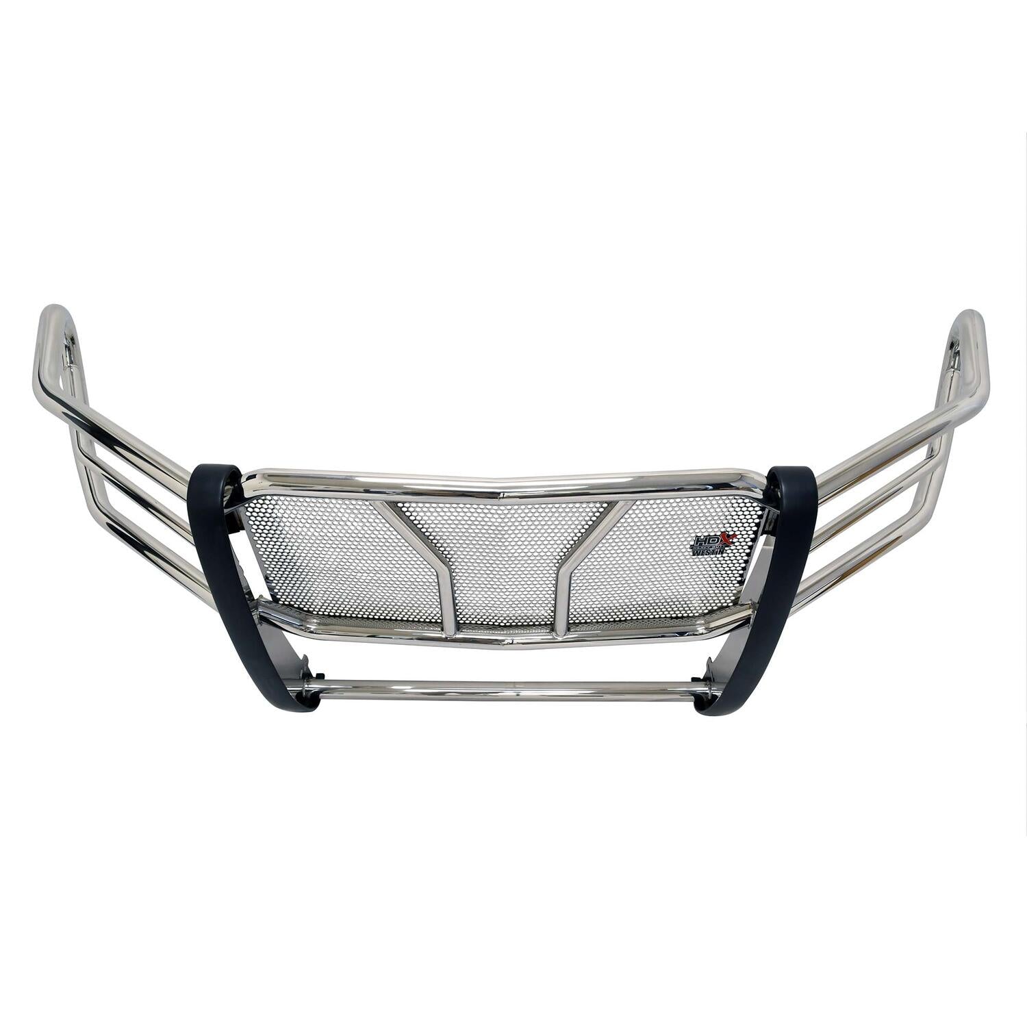 The HDX Grille Guard is the ultimate in extreme truck gear. It's a fully welded 1-piece grille guard that features full wraparound wings made of heavy duty 2 in. diameter tube. Uprights are finished and protected with extra wide rubber strip that is 1/8 in. thick and 2 3/4 in. wide resulting in a solid clean look. The full punch plate grille protects the vehicle's grille area. HDX Grille Guards are available in stainless and black powder coat finish.