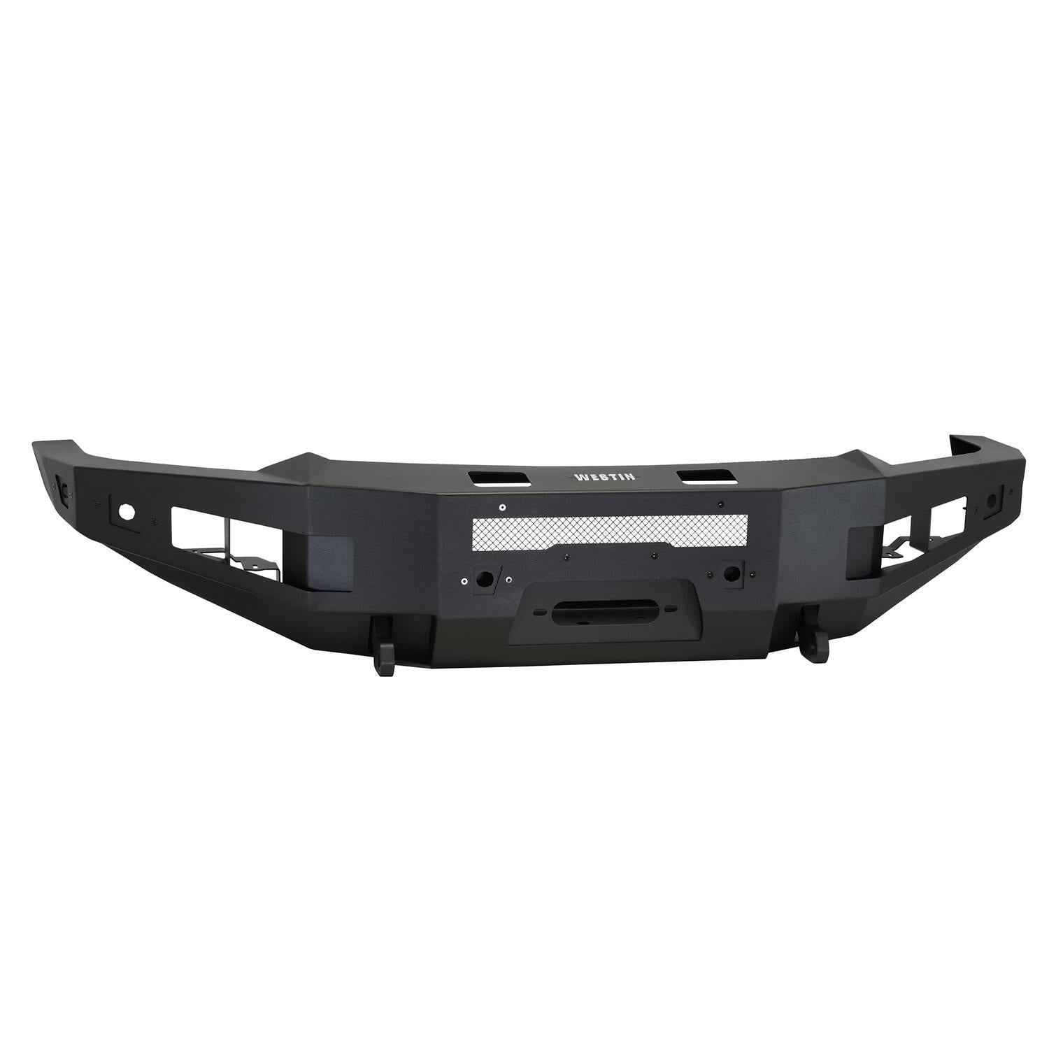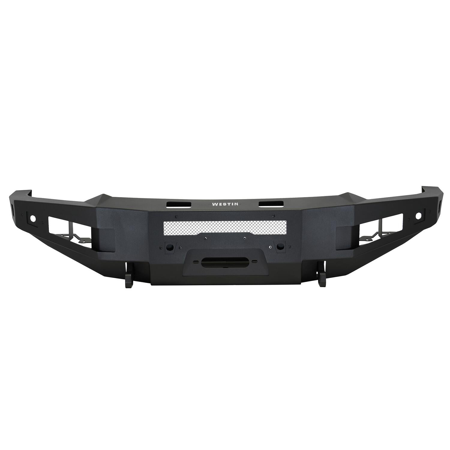 The Pro-Series Front Bumper from Westin is an attractive, heavy duty, "winch capable" upgrade which retains the OE factory features while upgrading both looks and functionality. Built for adventure, this bumper is ready for anything standing in its way. The Pro-Series was engineered to improve both approach angles and ground clearance for enhanced off-road capabilities. Constructed with a 10 gauge steel bumper shell the Pro-Series is designed for maximum strength and durability. Utilizing a heavy duty 1/4in. steel center section capable of accomodating most any 12k lb. winch, and added welded mounting points for recovery, this bumper takes you off the highway with confidence. Engineered to fit most double-row 20in. LED light bars (sold separately) for added safety on those late night excursions. Finished with a durable E-coat and black textured 2-stage treatment and backed by a full 3-year warranty Westin has you covered. Includes all the necessary mounting hardware for a "hassle free installation". Pro-Series is available for Ford, Chevy, Ram and Toyota applications. Add the matching Pro-Series Rear bumper to complete the look and take your truck to the next level.