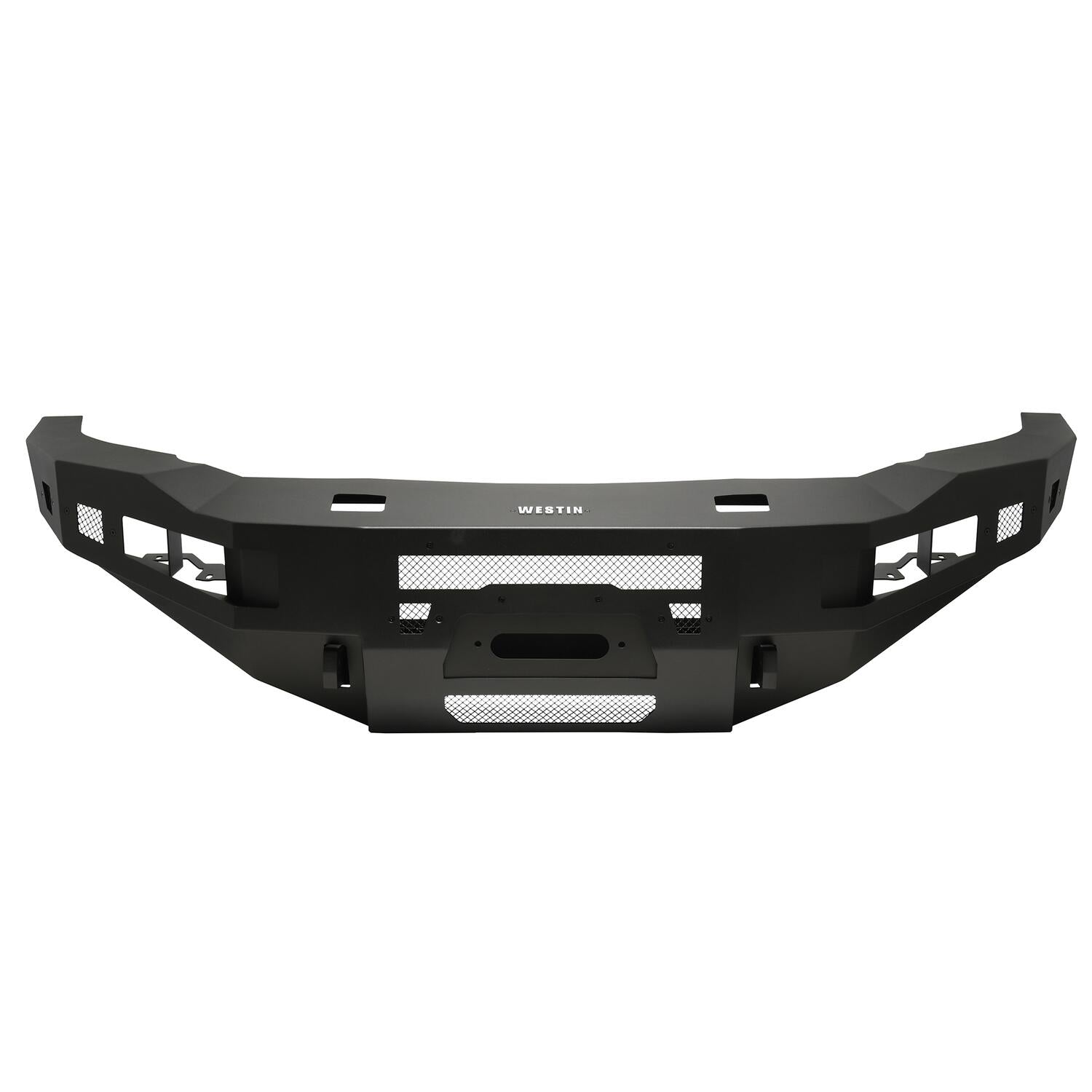 The Pro-Series Front Bumper from Westin is an attractive, heavy duty, "winch capable" upgrade which retains the OE factory features while upgrading both looks and functionality. Built for adventure, this bumper is ready for anything standing in its way. The Pro-Series was engineered to improve both approach angles and ground clearance for enhanced off-road capabilities. Constructed with a 10 gauge steel bumper shell the Pro-Series is designed for maximum strength and durability. Utilizing a heavy duty 1/4in. steel center section capable of accomodating most any 12k lb. winch, and added welded mounting points for recovery, this bumper takes you off the highway with confidence. Engineered to fit most double-row 20in. LED light bars (sold separately) for added safety on those late night excursions. Finished with a durable E-coat and black textured 2-stage treatment and backed by a full 3-year warranty Westin has you covered. Includes all the necessary mounting hardware for a "hassle free installation". Pro-Series is available for Ford, Chevy, Ram and Toyota applications. Add the matching Pro-Series Rear bumper to complete the look and take your truck to the next level.