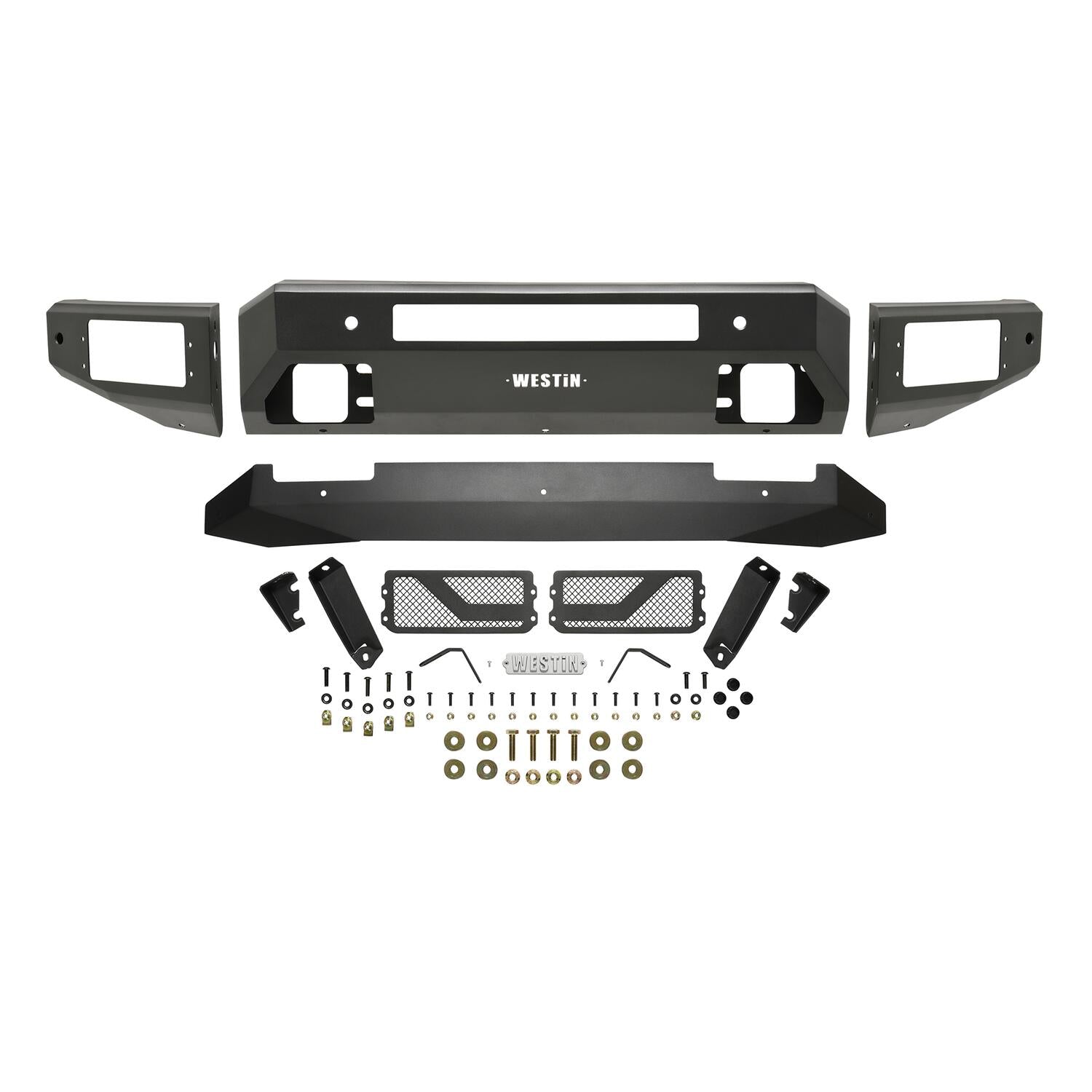 Westins Pro-Mod Front Bumper combines enhanced vehicle protection, with great looks. Pro-Mods revolutionary lightweight modular design is uniquely engineered with outrigger reinforcement brackets to provide maximum front end protection without compromising on strength, integrity or durability. The "high and tight" bumper profile creates a greater approach angle, which significantly improves off-road driving capabilities. The lightweight design also requires smaller shipping packages which dramatically reduces shipping costs. Pro-Mod bumpers feature a textured black finish with an e-coated base coat, providing long lasting corrosion protection from the elements. Once you see the Pro-Mod Front Bumper, the choice becomes obvious.