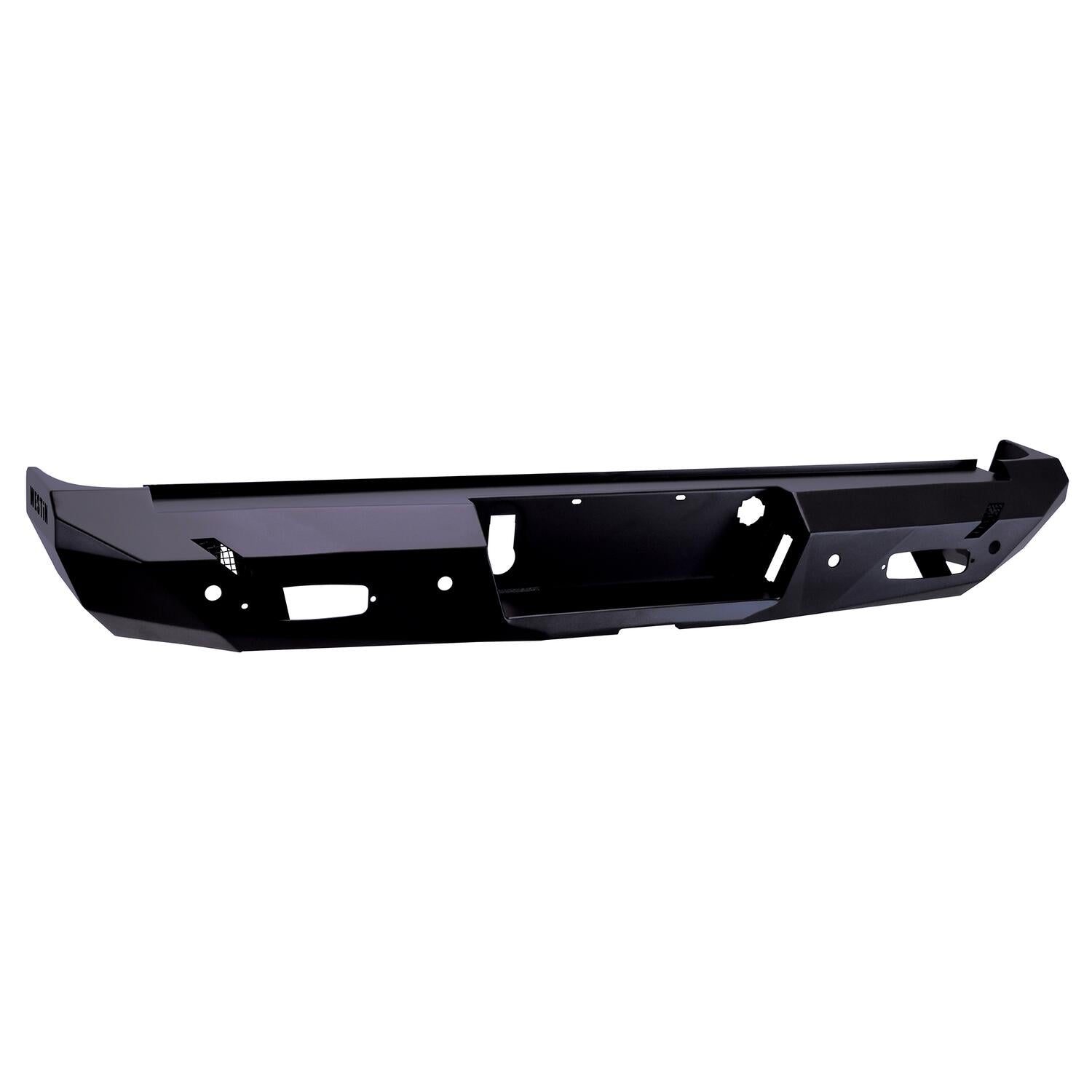 "High and Tight" best describes the great looking new Pro-Series Rear Bumpers from Westin. This all new "off road style" rear bumper features a light weight, slim, one-piece design, adding a modern, aggressive look to your truck. Built to improve ground clearance and departure angles when driving in more rugged terrain. The Pro-Series Rear Bumper is fully compatible for OEM parking sensors, hitch, and blind spot monitors. It also includes two LED license plate lights and can accommodate LED back up lights (sold separately). Featuring a textured black finish with an e-coated base coat, providing long lasting corrosion protection from the elements with easy bolt-on installation. Just add the original Pro-Mod Front Bumper, and your transformation from stock to custom is complete.