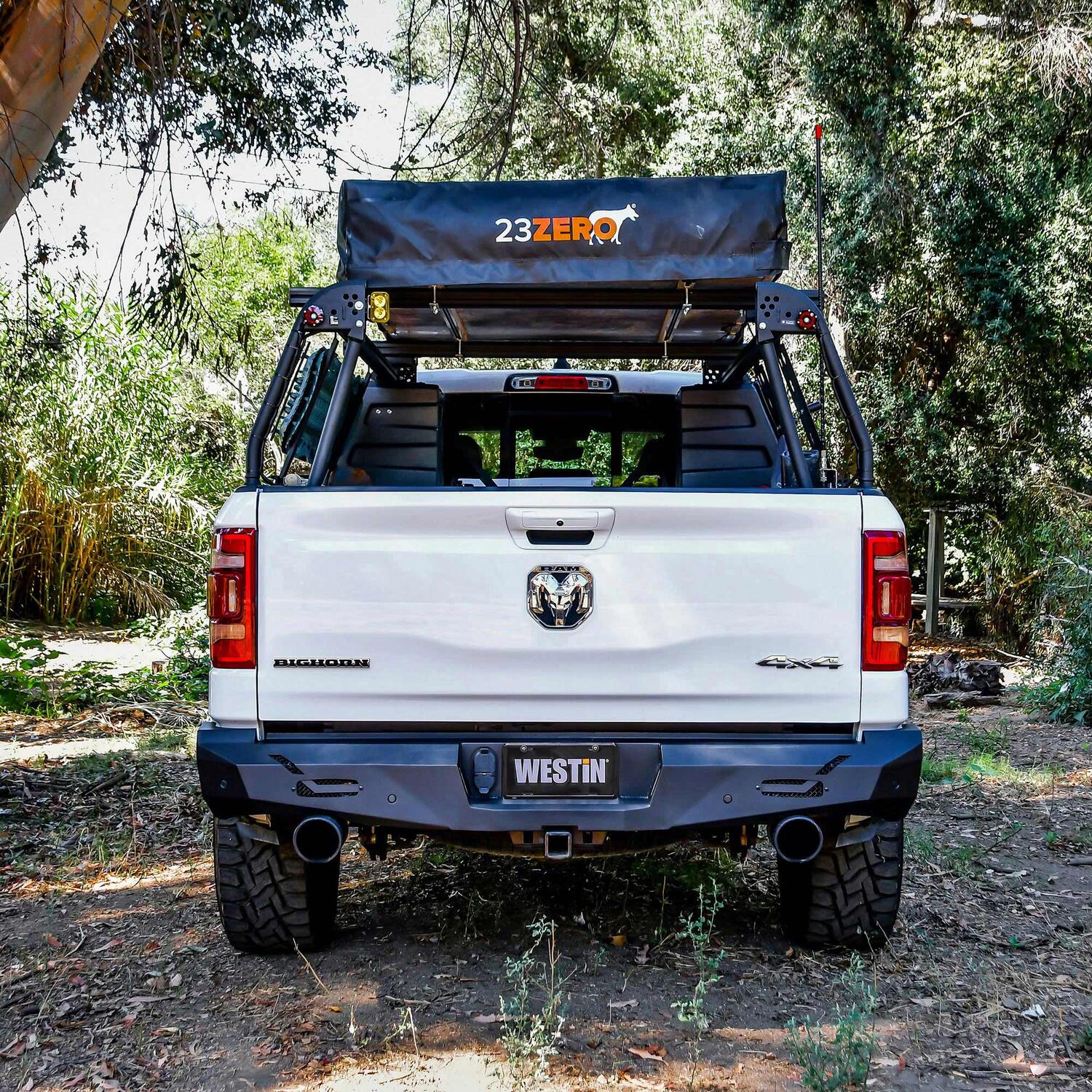 "High and Tight" best describes the great looking new Pro-Series Rear Bumpers from Westin. This all new "off road style" rear bumper features a light weight, slim, one-piece design, adding a modern, aggressive look to your truck. Built to improve ground clearance and departure angles when driving in more rugged terrain. The Pro-Series Rear Bumper is fully compatible for OEM parking sensors, hitch, and blind spot monitors. It also includes two LED license plate lights and can accommodate LED back up lights (sold separately). Featuring a textured black finish with an e-coated base coat, providing long lasting corrosion protection from the elements with easy bolt-on installation. Just add the original Pro-Mod Front Bumper, and your transformation from stock to custom is complete.