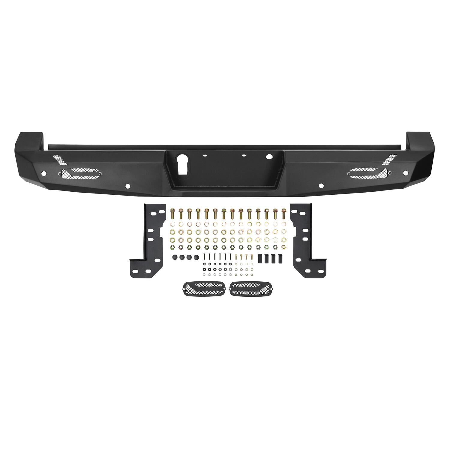 "High and Tight" best describes the great looking new Pro-Series Rear Bumpers from Westin. This all new "off road style" rear bumper features a light weight, slim, one-piece design, adding a modern, aggressive look to your truck. Built to improve ground clearance and departure angles when driving in more rugged terrain. The Pro-Series Rear Bumper is fully compatible for OEM parking sensors, hitch, and blind spot monitors. It also includes two LED license plate lights and can accommodate LED back up lights (sold separately). Featuring a textured black finish with an e-coated base coat, providing long lasting corrosion protection from the elements with easy bolt-on installation. Just add the original Pro-Mod Front Bumper, and your transformation from stock to custom is complete.