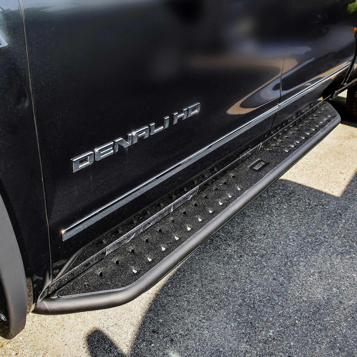 Westins Outlaw Nerf Step Bars offer the perfect balance between function and strength resulting in the ultimate rugged look designed to last and impress. Engineered to fit tightly against rocker panels, the Outlaw Nerf Step Bars provide a solid fit and superb protection while simultaneously improving vehicle cab access. Whether you are an avid overlander or simply an off-roader, rest assured you will be safely stepping into your vehicle with a 16 gauge steel coarse step surface and 2in. diameter tubing. Featuring bolt-on installation, an e-coated base coat and textured black powder coat top finish, Westins Outlaw Nerf Step Bars are the ideal match for the toughest of conditions.