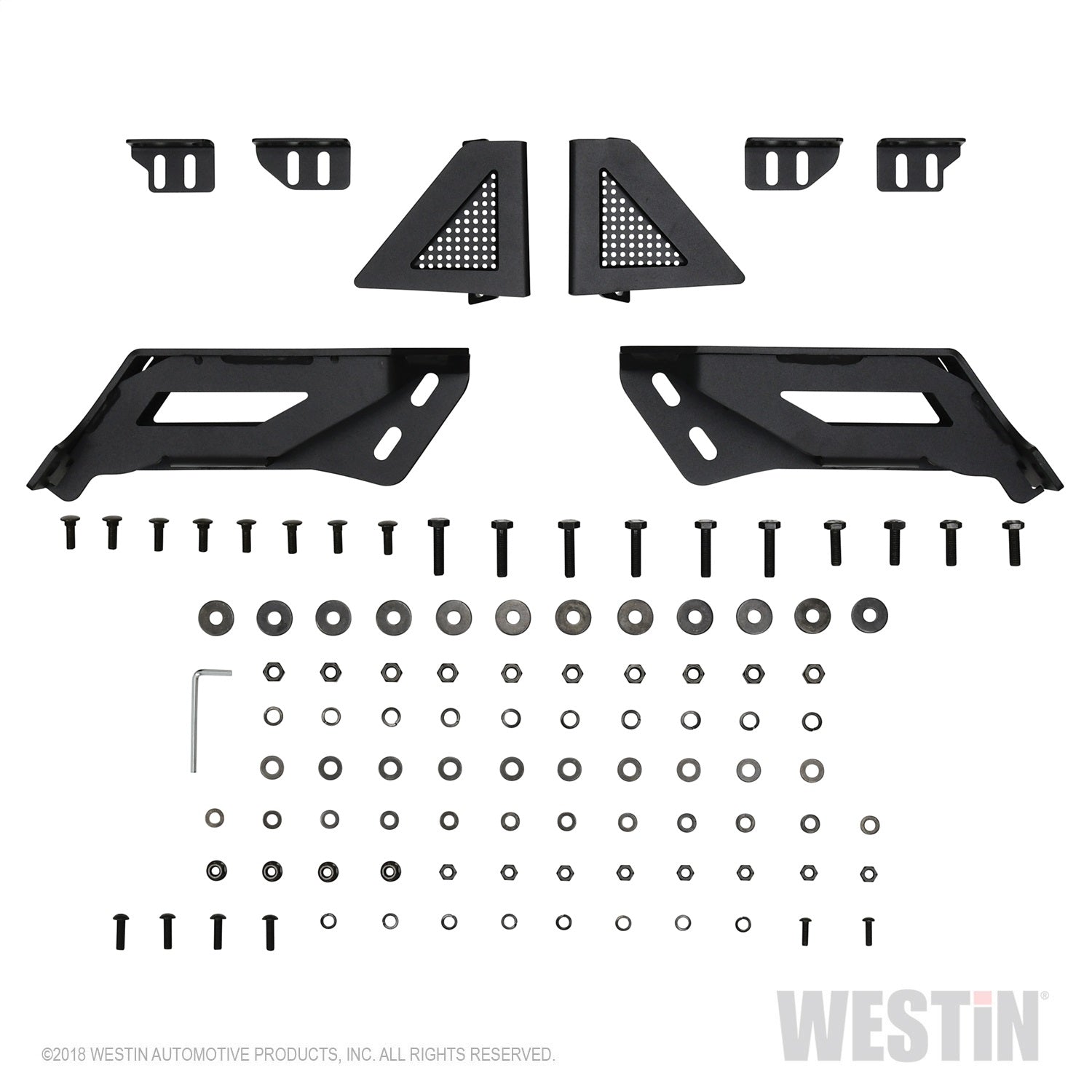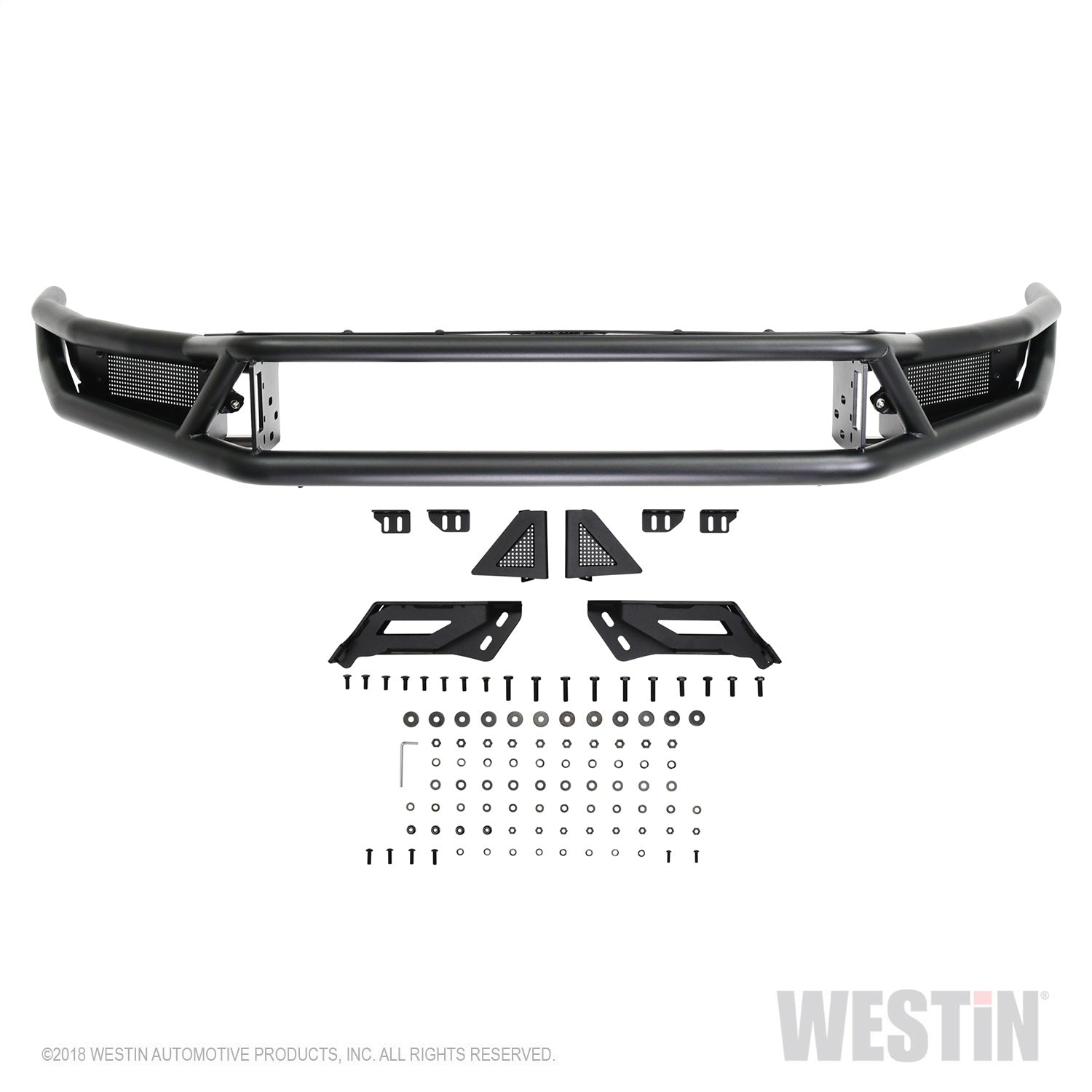 Westins Outlaw Front Bumper is made of strong 14 gauge steel that gives your truck the front end style, durability and function it needs. It features a 2 in. diameter tube frame with 1.5 in. diameter center tubes, and integrated bolt-on LED light mounts for up to two single or one double row 30 in. LED bar. Add an Outlaw Skid Plate or Outlaw LED Light Kit to enhance your vehicles look and strength on and off the road. Round LED Light Kit with Westin Auxiliary Lights or Square LED Light Kit with Westin HyperQ Auxiliary Lights sold separately. Mount kit included. Available in textured black finish.