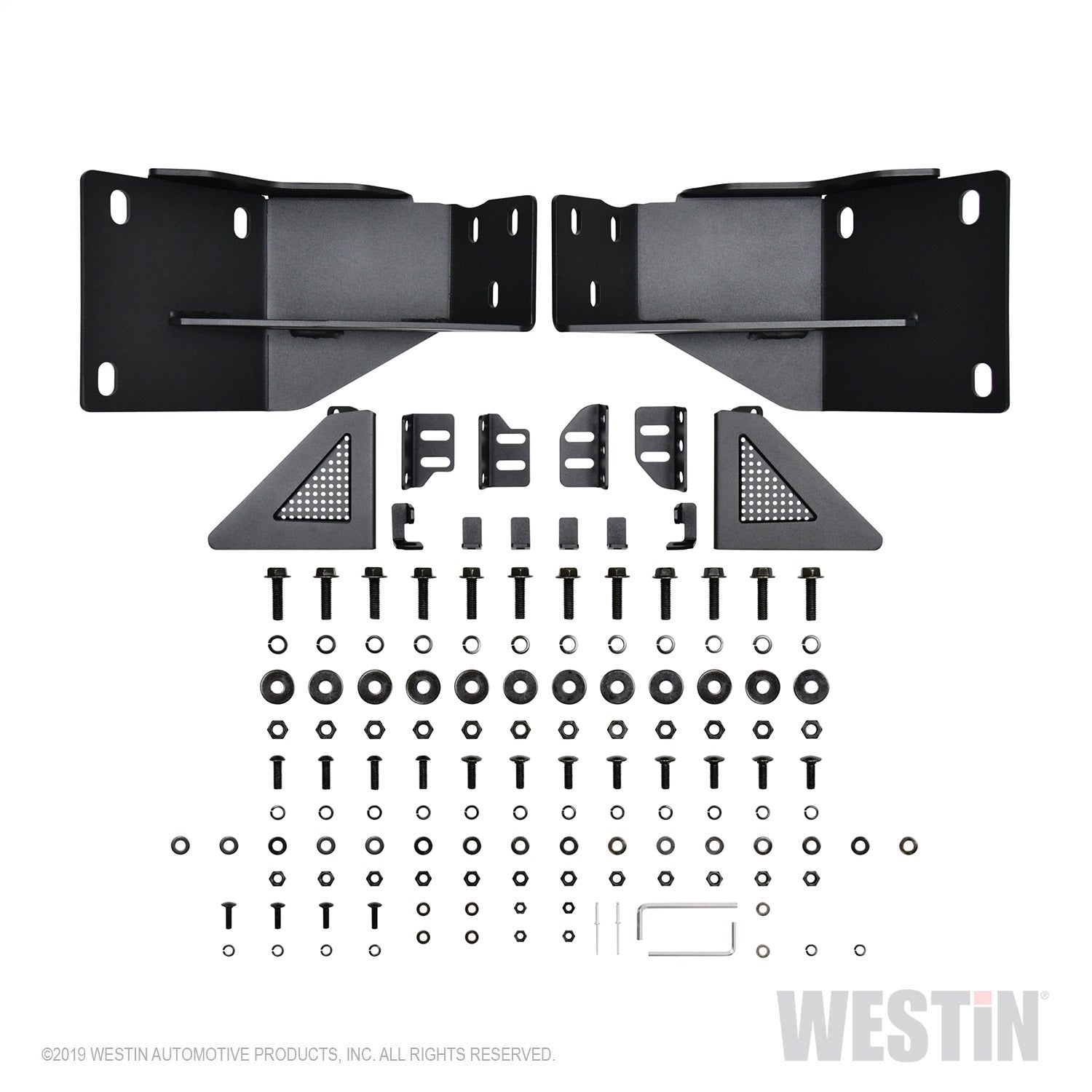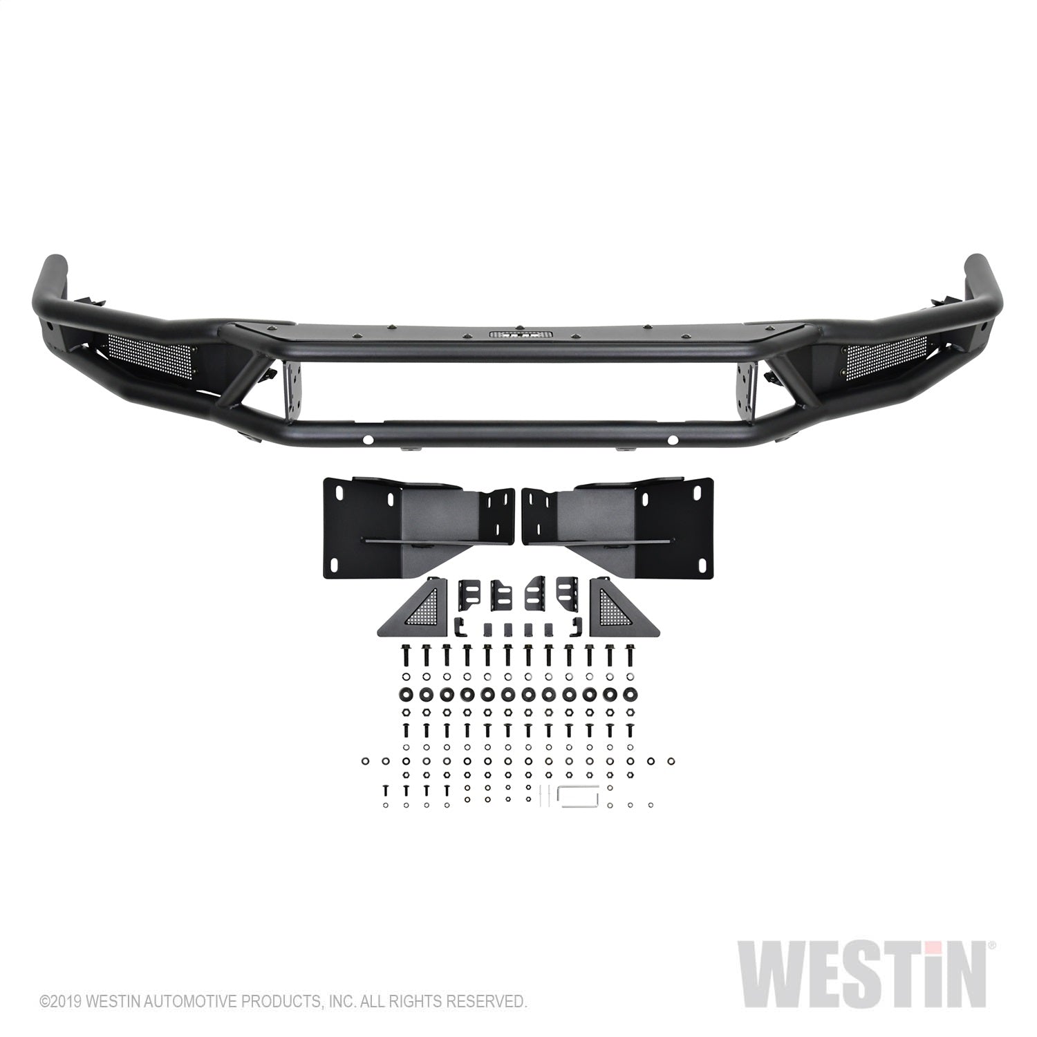 Westins Outlaw Front Bumper is made of strong 14 gauge steel that gives your truck the front end style, durability and function it needs. It features a 2 in. diameter tube frame with 1.5 in. diameter center tubes, and integrated bolt-on LED light mounts for up to two single or one double row 30 in. LED bar. Add an Outlaw Skid Plate or Outlaw LED Light Kit to enhance your vehicles look and strength on and off the road. Round LED Light Kit with Westin Auxiliary Lights or Square LED Light Kit with Westin HyperQ Auxiliary Lights sold separately. Mount kit included. Available in textured black finish.