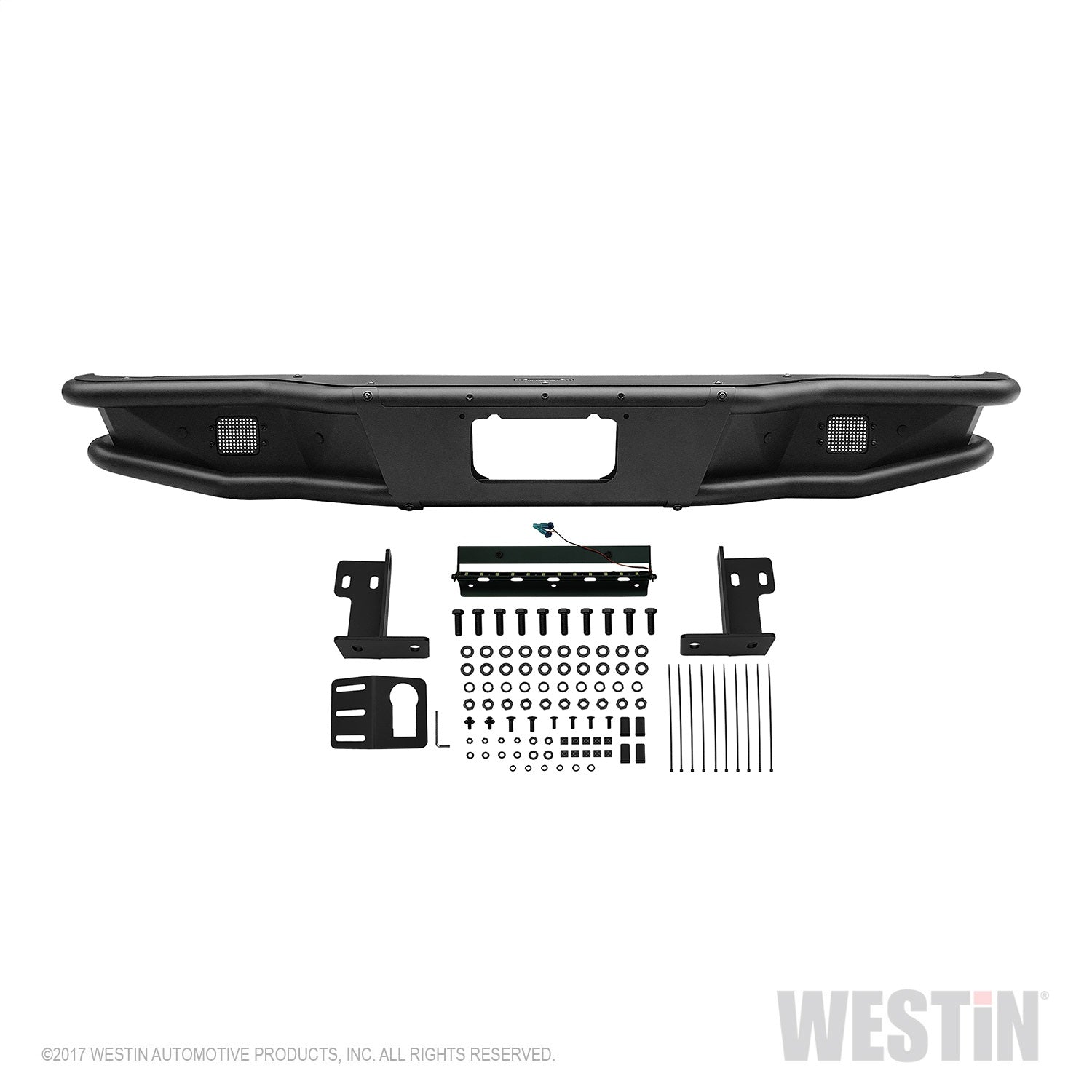 Westins Outlaw Rear Bumper is made of 14 gauge steel with a 2 diameter frame. It features a retractable license plate holder that hides your trucks receiver hitch and includes mount points for optional back lighting. Add one of Westins Class III/IV hitches to do the heavy-lifting and pull your weight when you need it. Our Outlaw Rear Bumper is available for vehicles that come with or without back-up sensors. Installation is bolt-on so no drilling is required. Mount kit included. Available in textured black finish.