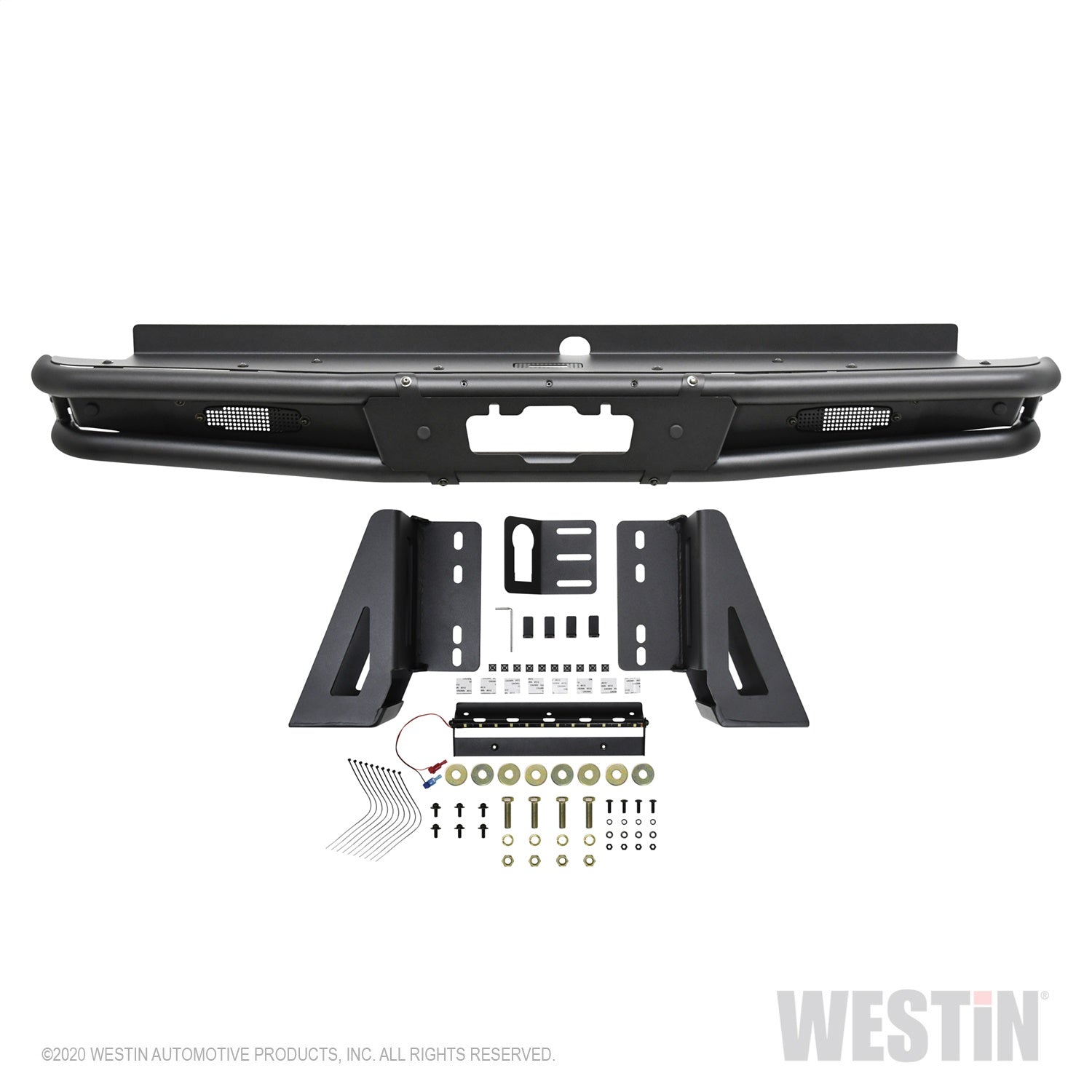 Westins Outlaw Rear Bumper is made of 14 gauge steel with a 2 diameter frame. It features a retractable license plate holder that hides your trucks receiver hitch and includes mount points for optional back lighting. Add one of Westins Class III/IV hitches to do the heavy-lifting and pull your weight when you need it. Our Outlaw Rear Bumper is available for vehicles that come with or without back-up sensors. Installation is bolt-on so no drilling is required. Mount kit included. Available in textured black finish.
