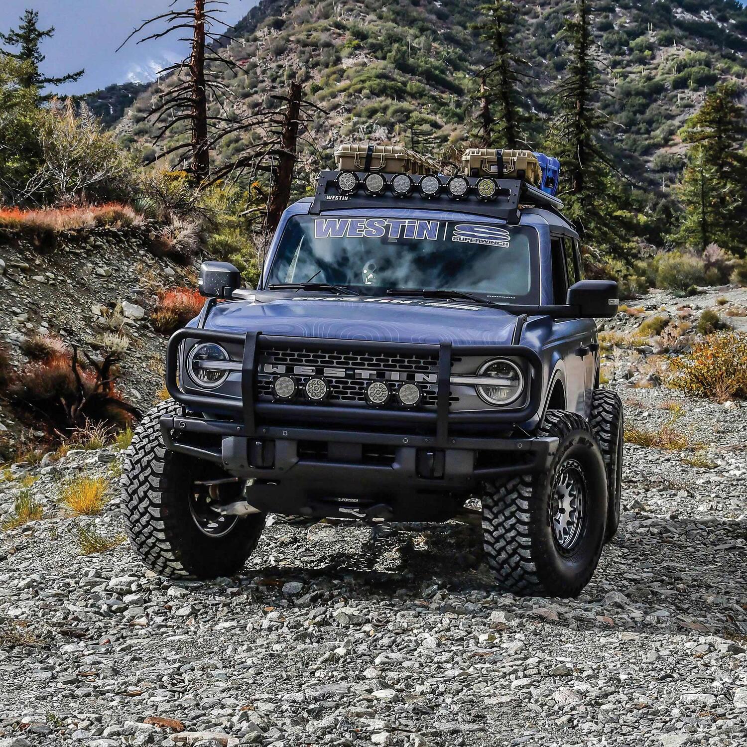 The XTS Brush Guard from Westin is an attractive, front end upgrade for your OE steel Modular Performance front bumper. It features 2in. diameter tubing for maximum durability and constructed of 10-gauge steel uprights for strength and style. The XTS Brush Guard provides a variety of optional light mounting center bars, completing your vehicle's upgrade with round or square LED light kit with Westin auxiliary lights (sold separately). The XTS Brush Guard has a durable textured black powder coat finish with an e-coated base coat, providing long lasting corrosion protection from the elements, and is backed by a 3-year warranty. Includes all necessary mounting hardware for a hassle-free installation. The XTS Brush Guard is the perfect choice for Ford Bronco owners.