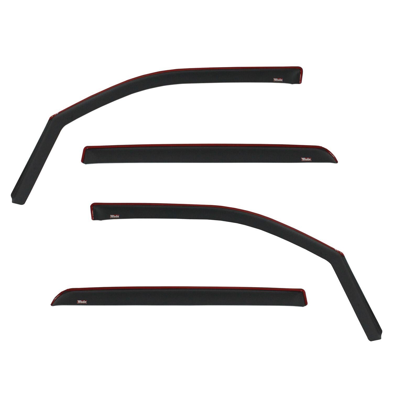 Wade In-Channel Wind Deflectors are a quick and quality solution to reducing wind, noise, heat, and glare without compromising the entry of fresh air when windows are rolled down slightly. They are easily installed by inserting the flanged edge into the directly window channel and secured with 3M automotive grade tape. Wade Wind Deflectors promote the circulation of fresh air while minimizing its volume and strength as it re-directs it up and into, or out of the vehicle. Their sleek design deflects wind and noise from entering the vehicle for a more pleasant ride any time of year. They are made from high-gloss smoke acrylic, and have transparency, so, visibility is never obstructed.