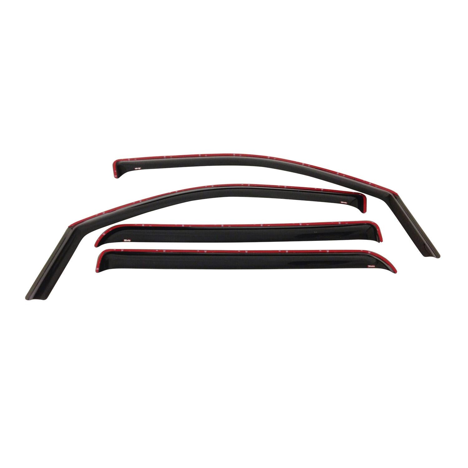 Wade In-Channel Wind Deflectors are a quick and quality solution to reducing wind, noise, heat, and glare without compromising the entry of fresh air when windows are rolled down slightly. They are easily installed by inserting the flanged edge into the directly window channel and secured with 3M automotive grade tape. Wade Wind Deflectors promote the circulation of fresh air while minimizing its volume and strength as it re-directs it up and into, or out of the vehicle. Their sleek design deflects wind and noise from entering the vehicle for a more pleasant ride any time of year. They are made from high-gloss smoke acrylic, and have transparency, so, visibility is never obstructed.
