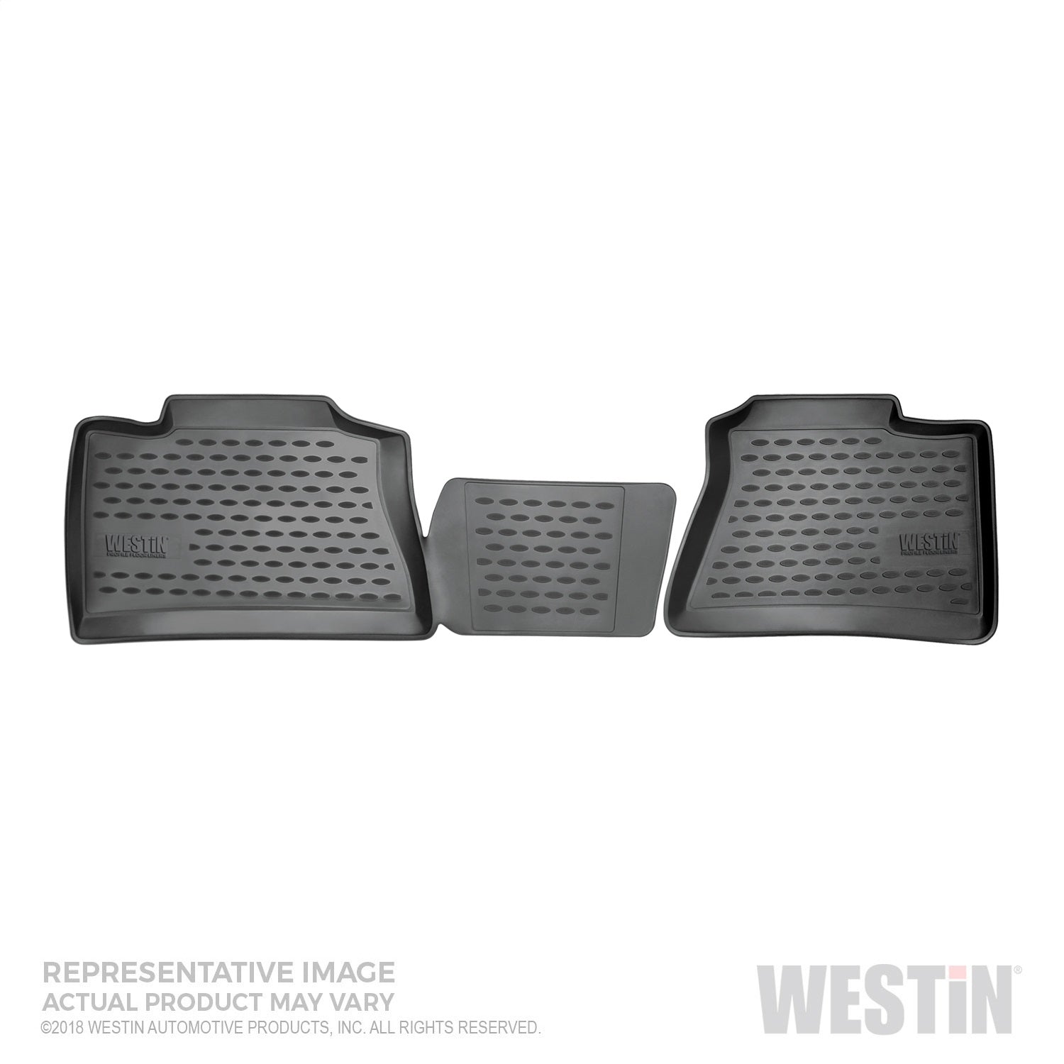 Westin Profile Floor Liners for vehicle front row protect the driver and passenger side floor areas from daily wear and tear. Their flexible durable and odorless rubber material maintains its shape in heat cold or from heavy loads. They feature a raised textured surface that provides great traction and can be easily cleaned with soap and water. Front row liners are designed to accommodate vehicles equipped with retainer hooks where applicable. Great for all seasons!