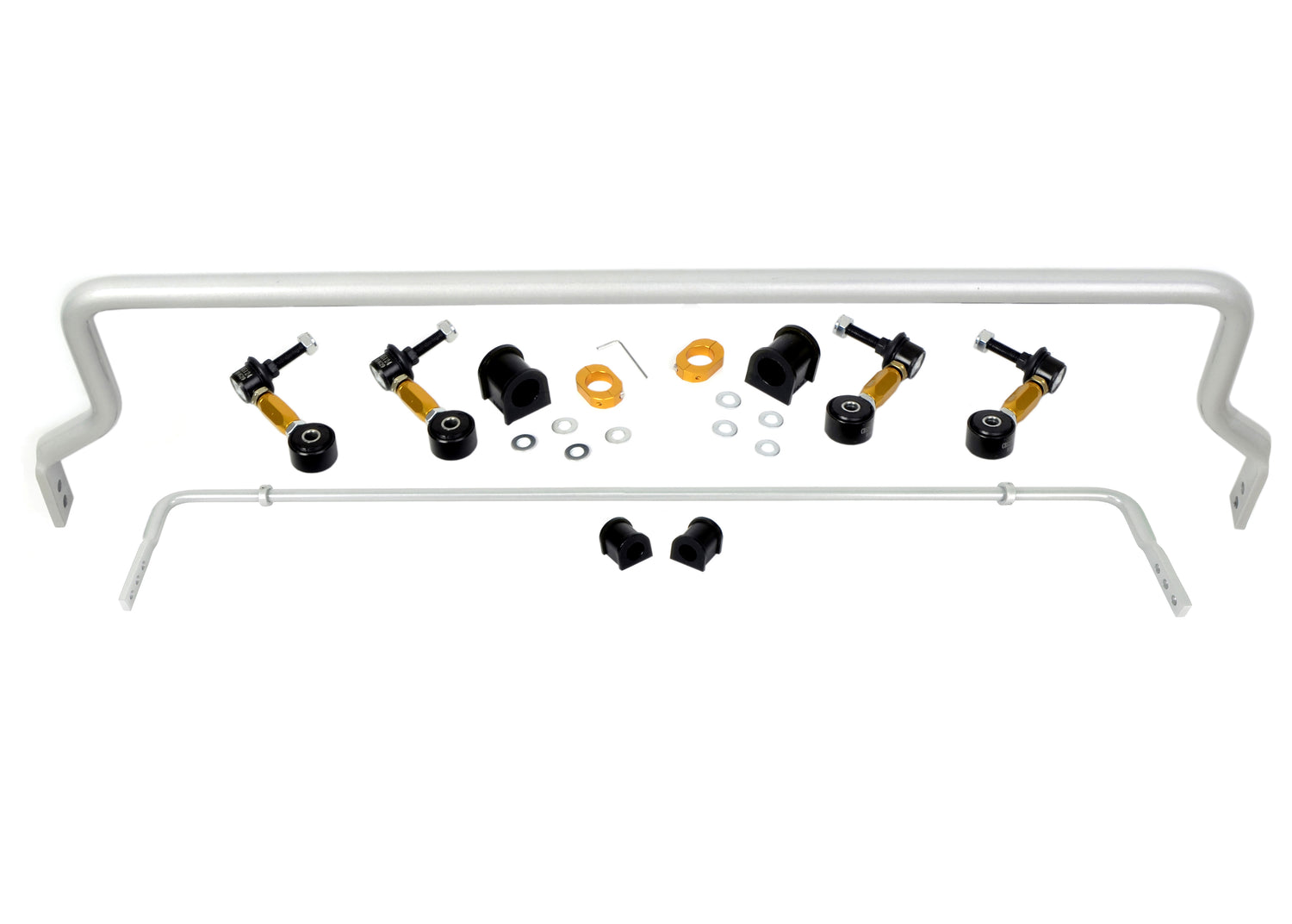 Engineered to 'Activate More Grip', BMK002 is a packaged solution designed to improve performance and enhance the driving experience of your vehicle. Boasting a 24mm 2 point adjustable front sway bar and 16mm 3 point adjustable rear sway bar, the kit is completed with high quality front sway bar links and mounting accessories that ensure optimum performance and ease of installation. Achieve perfect balance and precise tuning with this Whiteline Sway Bar Kit.