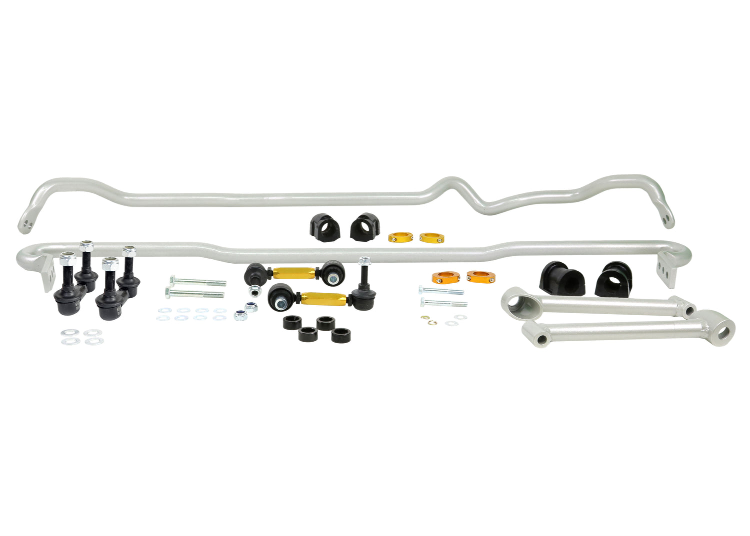Engineered to 'Activate More Grip', BSK018 is a packaged solution designed to improve performance and enhance the driving experience of your vehicle. Boasting a 26mm 2 point adjustable front sway bar and 22mm 3 point adjustable rear sway bar, the kit is completed with high quality sway bar links and mounting accessories that ensure optimum performance and ease of installation. Achieve perfect balance and precise tuning with this Whiteline Sway Bar Kit.
