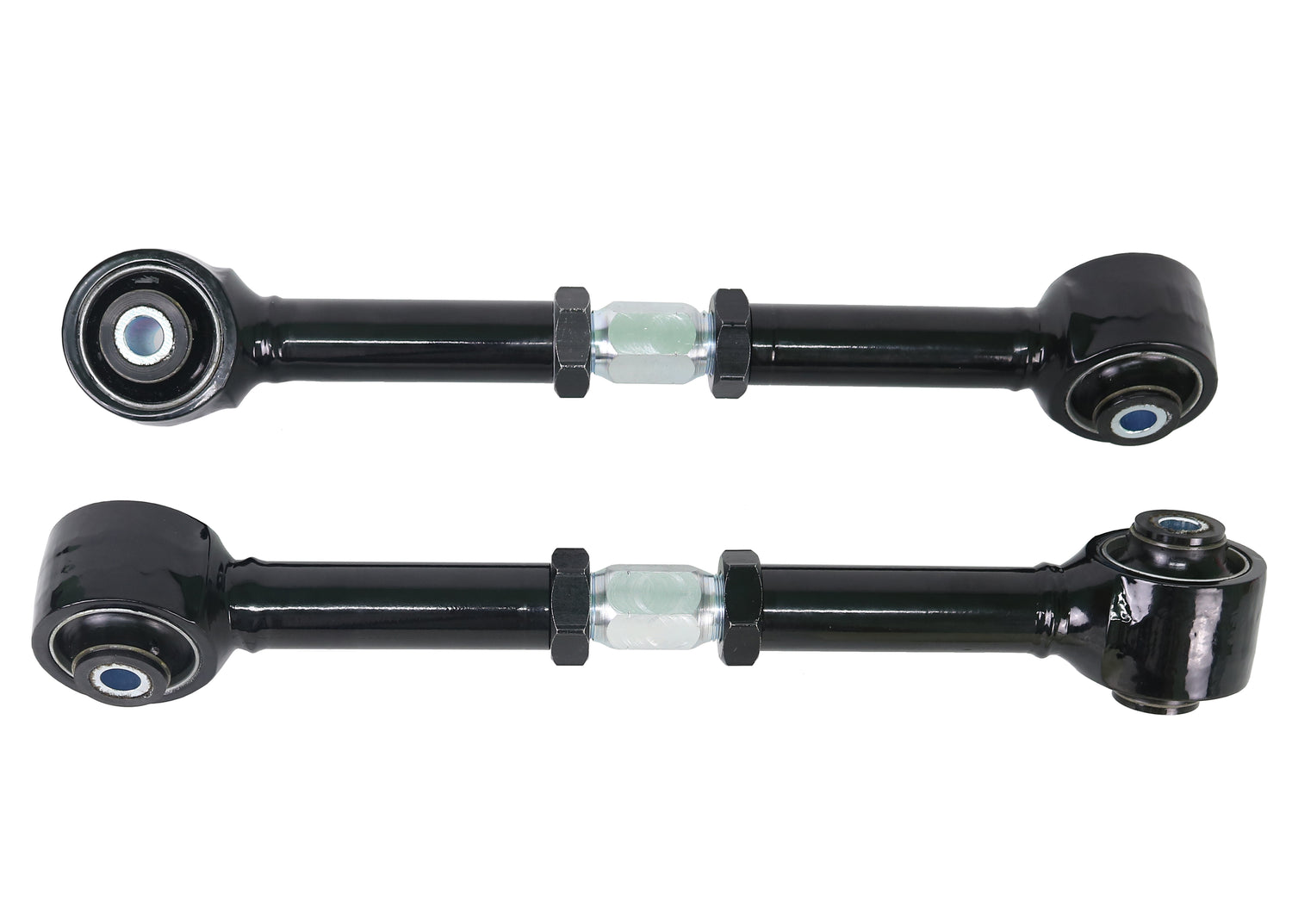 Heavy duty turnbuckle adjustable trailing arms provides incremental on car adjustability of differential pinion angle. This allows you to dial in more or less traction under heavy acceleration. Best matched with Whiteline's heavy duty upper trailing arms for optimum performance.